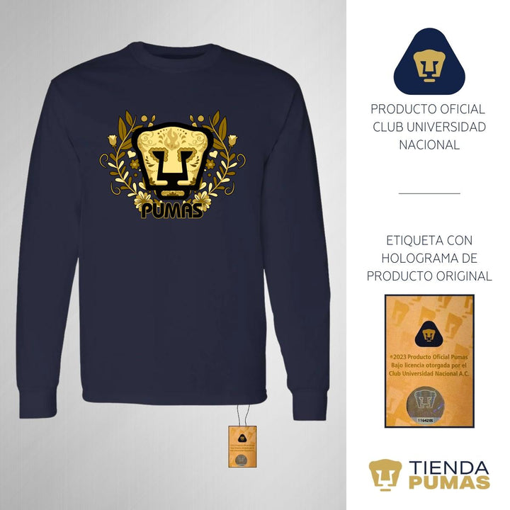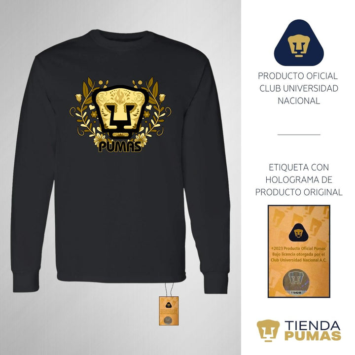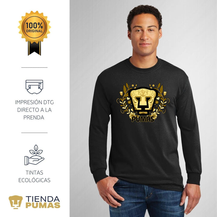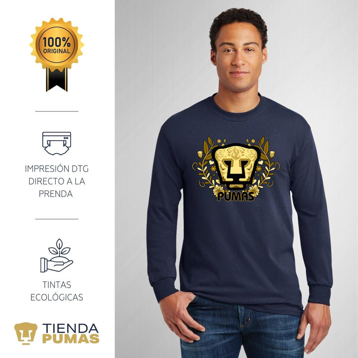 Playera Hombre Pumas UNAM Manga Larga Día de Muertos Oro