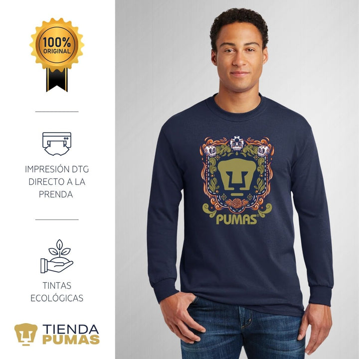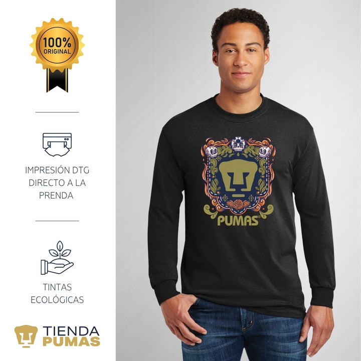 - Playera de manga larga para hombre edición "Día de Muertos Dorado"