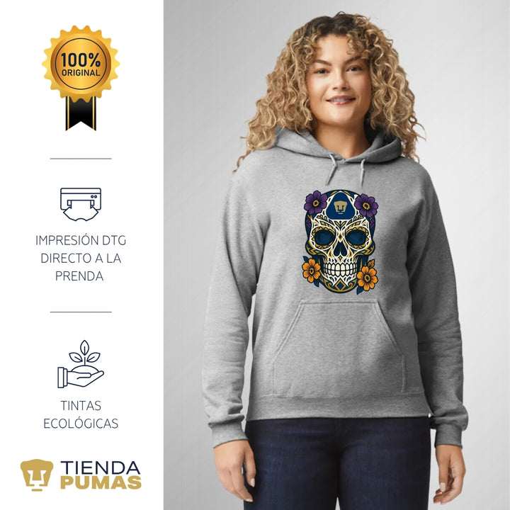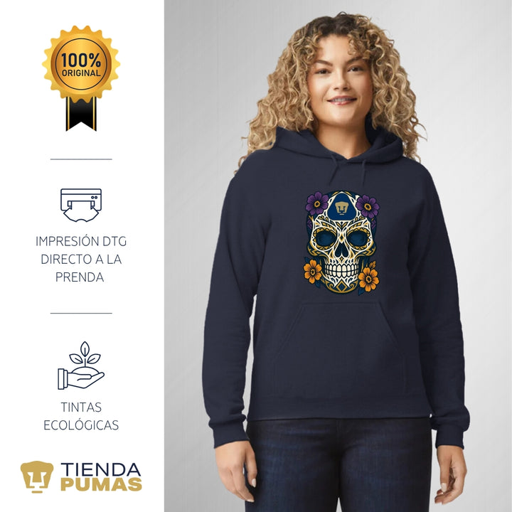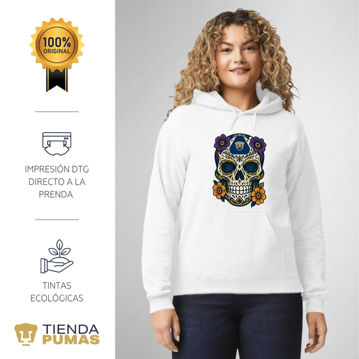 Sudadera Mujer Hoodie Pumas UNAM Calavera Flor