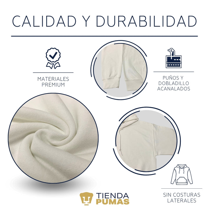 • ORIGINALIDAD Y SOSTENIBILIDAD: Sudadera de adulto con capucha, Producto Oficial con un diseño original de Pumas UNAM impreso con tecnología DTG (directo a la prenda) tacto cero. Se utilizan tintas ecológicas sin contaminantes que se adhieren a las fibras de la ropa, garantizando calidad, colores vivos e imagen de larga duración en la sudadera sin comprometer el planeta. La sudadera cuenta con etiqueta y holograma que garantiza un producto 100% original de Pumas UNAM.