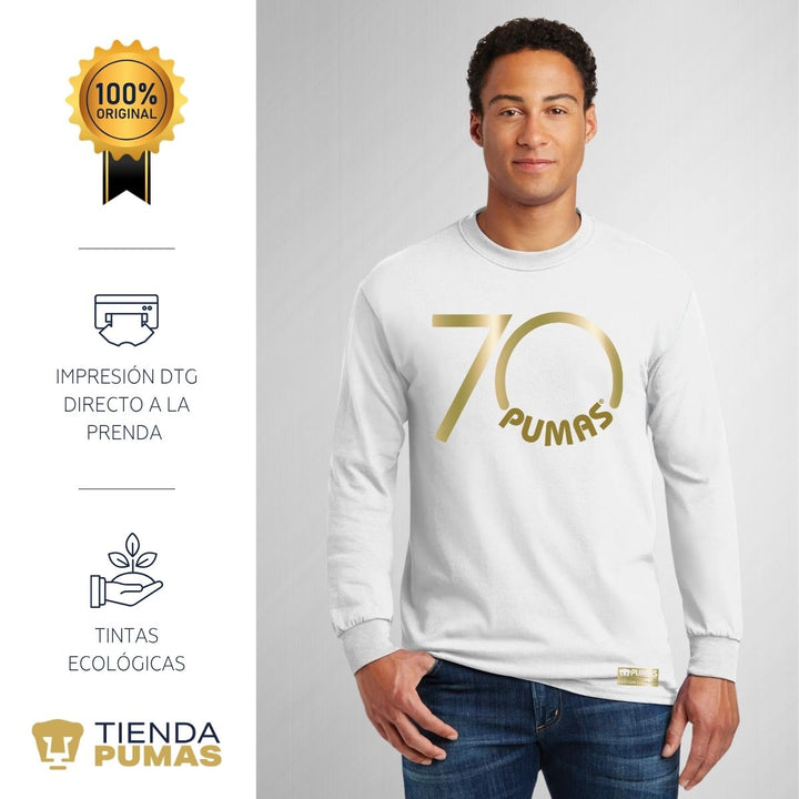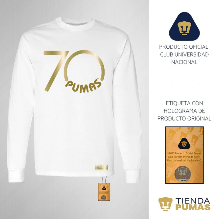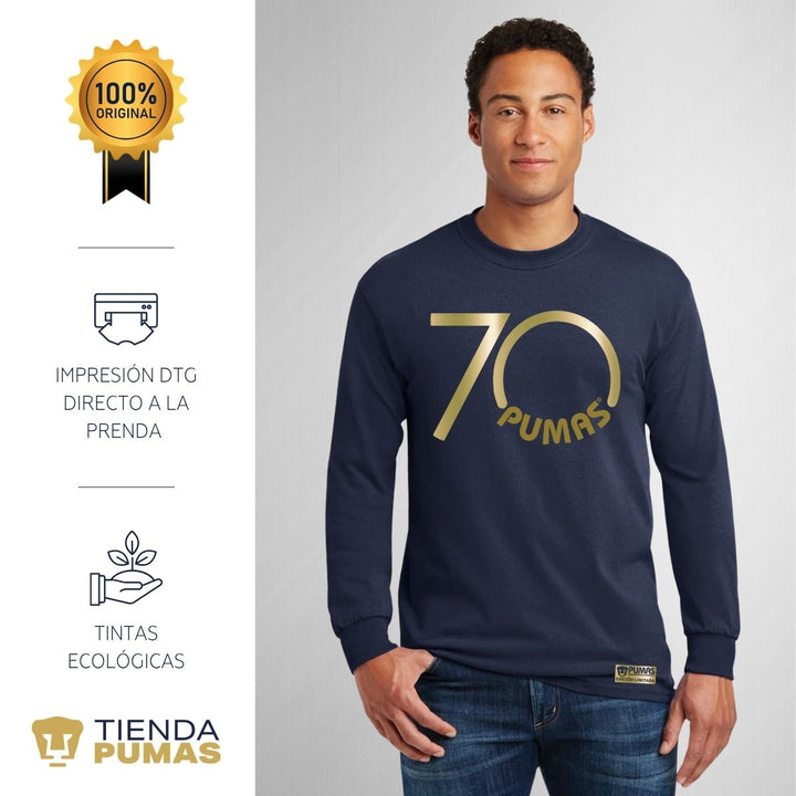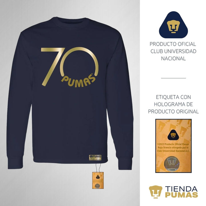 Playera Hombre Pumas UNAM Manga Larga 70 Aniversario Fte Edición Limitada 4