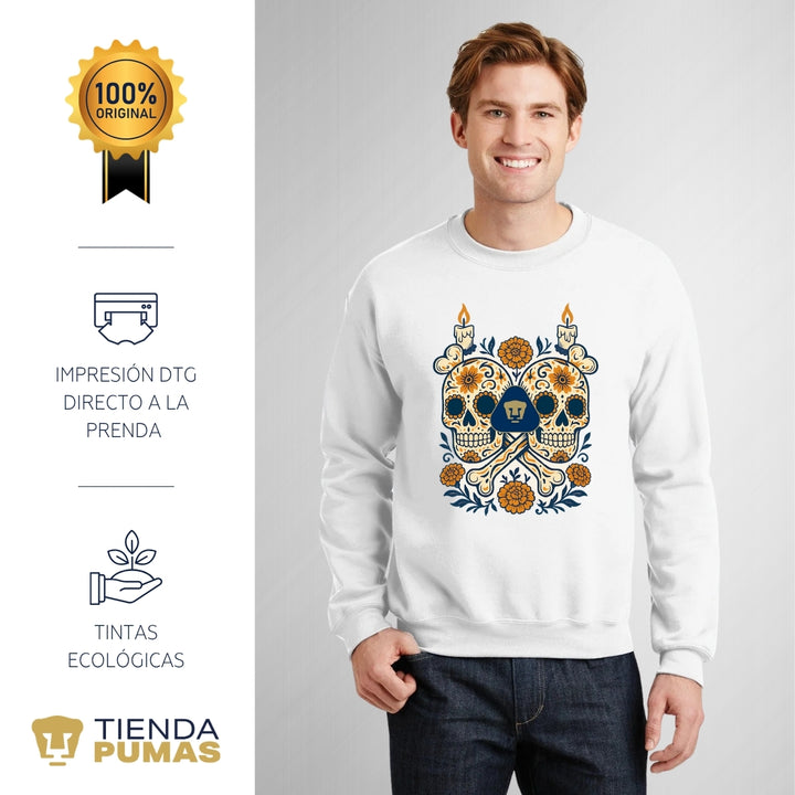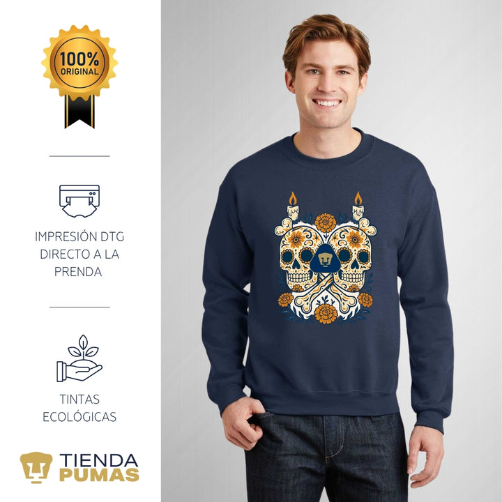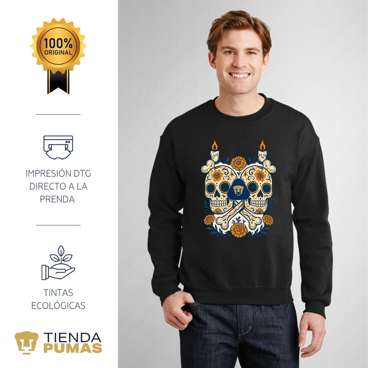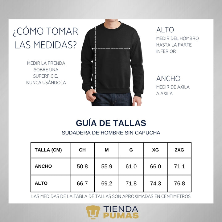 - ORIGINALIDAD Y SOSTENIBILIDAD: Sudadera de adulto cuello redondo sin gorro, Producto Oficial con un diseño original de Pumas UNAM impreso con tecnología DTG (directo a la prenda) tacto cero. Se utilizan tintas ecológicas sin contaminantes que se adhieren a las fibras de la ropa, garantizando calidad, colores vivos e imagen de larga duración en la sudadera sin comprometer el planeta. La sudadera cuenta con etiqueta y holograma que garantiza un producto 100% original de Pumas UNAM.