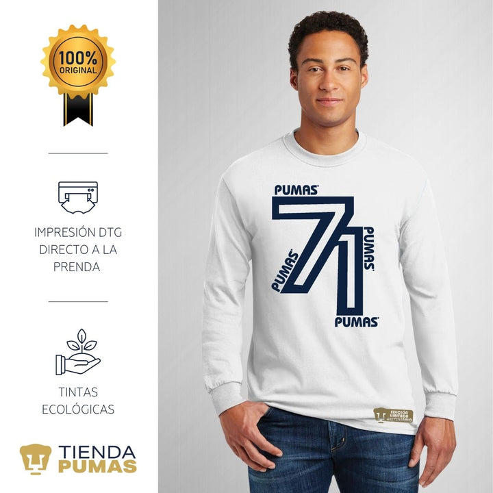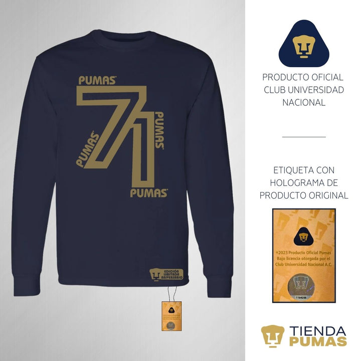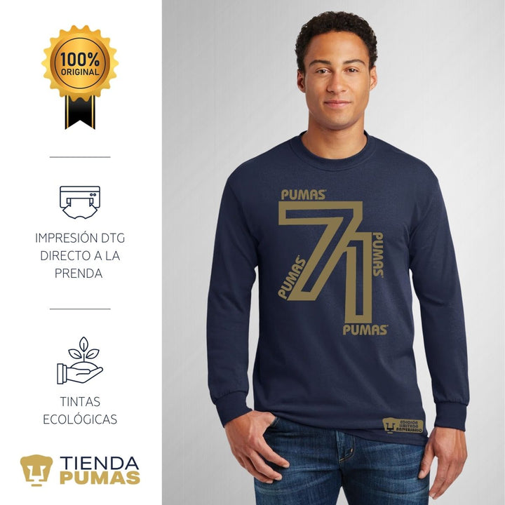 Playera Hombre Pumas UNAM Manga Larga 71 Aniversario