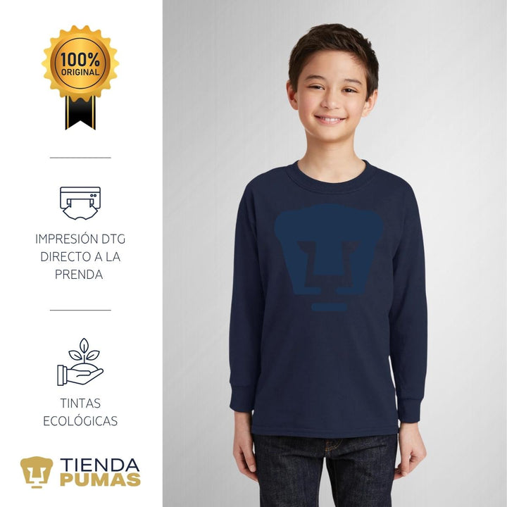 Playera M Larga Niños Pumas UNAM Logo Azul