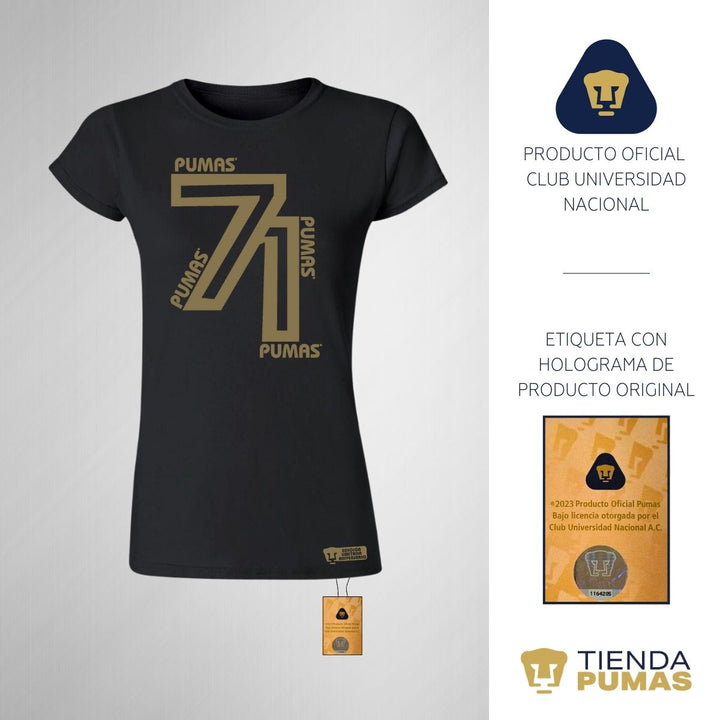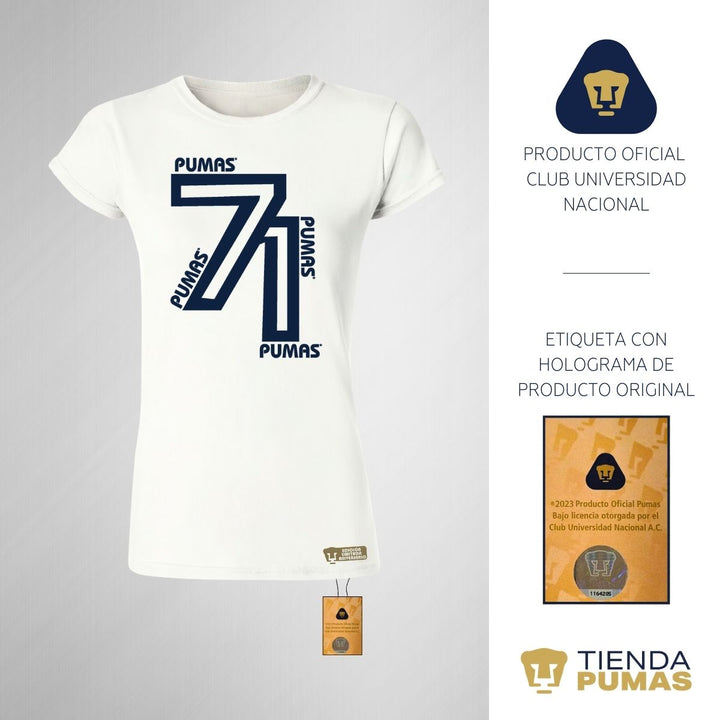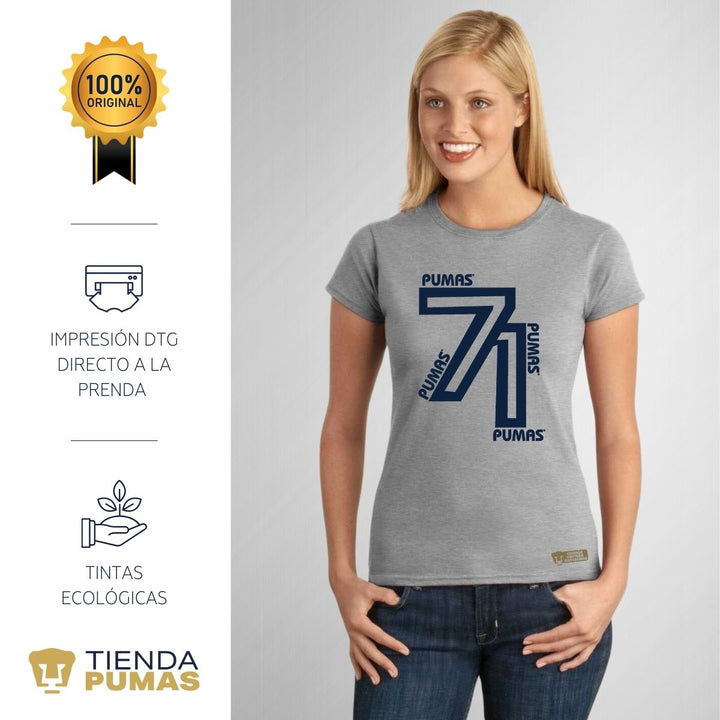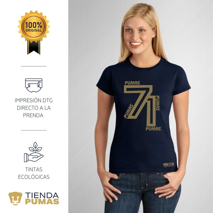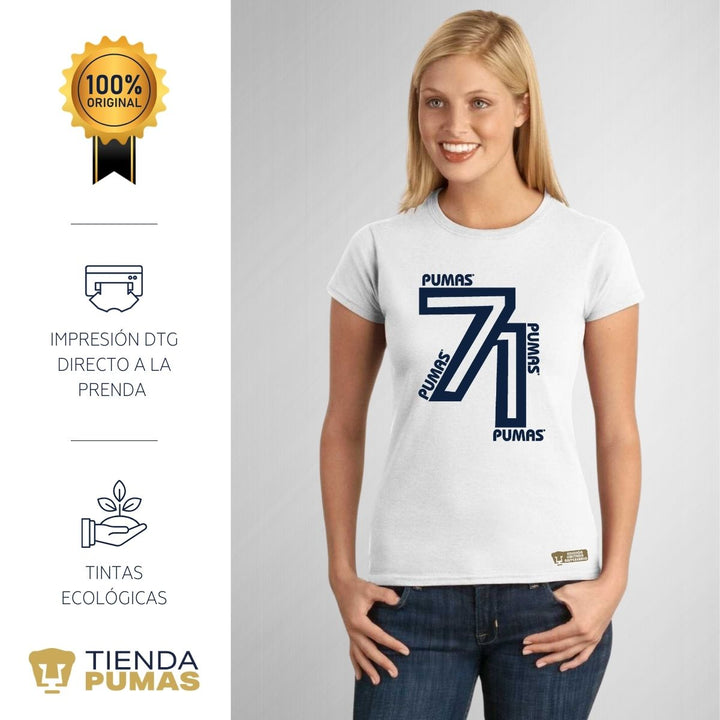 - ORIGINALIDAD Y SOSTENIBILIDAD: Playera de mujer manga corta, Producto Oficial con un diseño original de Pumas UNAM impreso con tecnología DTG (directo a la prenda) tacto cero. Se utilizan tintas ecológicas sin contaminantes que se adhieren a las fibras de la ropa, garantizando calidad, colores vivos e imagen de larga duración en la camiseta sin comprometer el planeta. La playera cuenta además con etiqueta y holograma que la garantiza como producto 100% original de Pumas UNAM.
