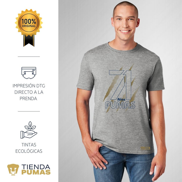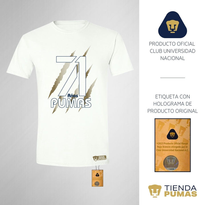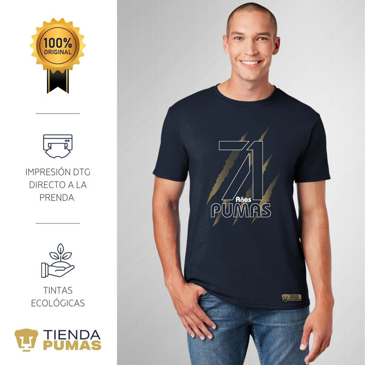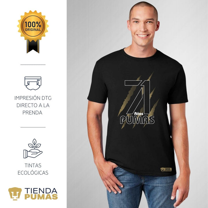 - ORIGINALIDAD Y SOSTENIBILIDAD: Playera de hombre de manga corta, Producto Oficial con un diseño original de Pumas UNAM impreso con tecnología DTG (directo a la prenda) tacto cero. Se utilizan tintas ecológicas sin contaminantes que se adhieren a las fibras de la ropa, garantizando calidad, colores vivos e imagen de larga duración en la camiseta sin comprometer el planeta. La playera cuenta además con etiqueta y holograma que garantiza un producto 100% original de Pumas UNAM.