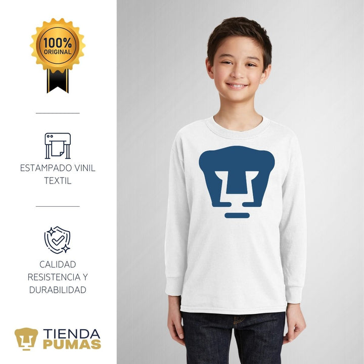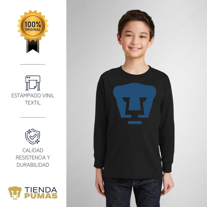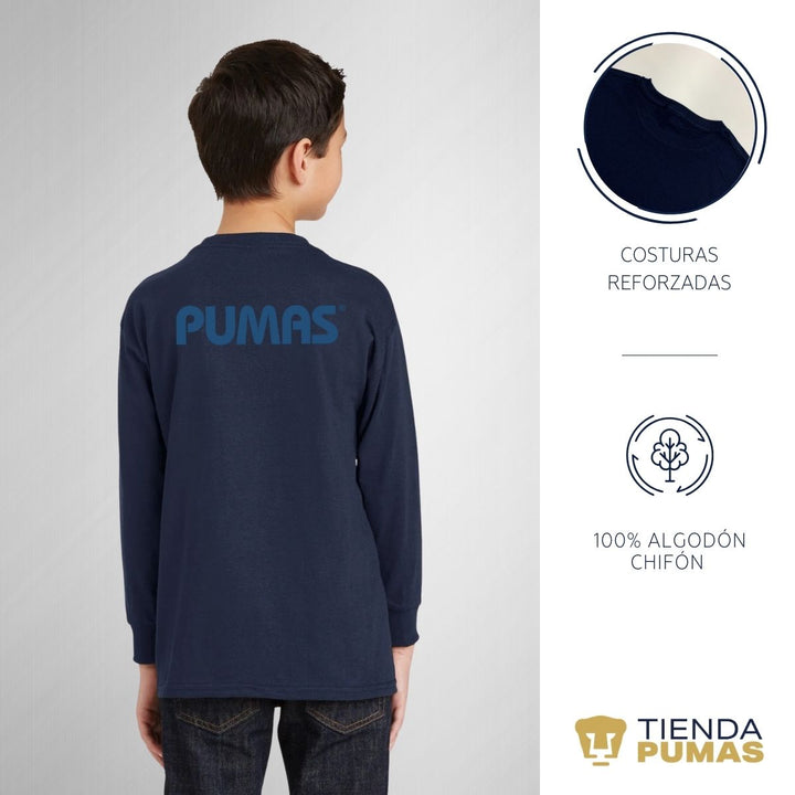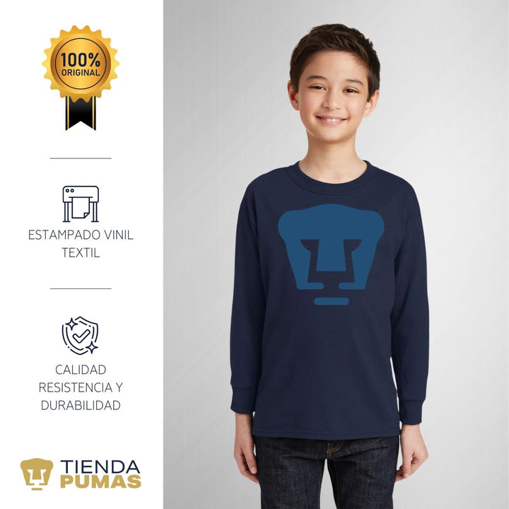 Playera M Larga Niños Pumas UNAM Logo Vinil Azul