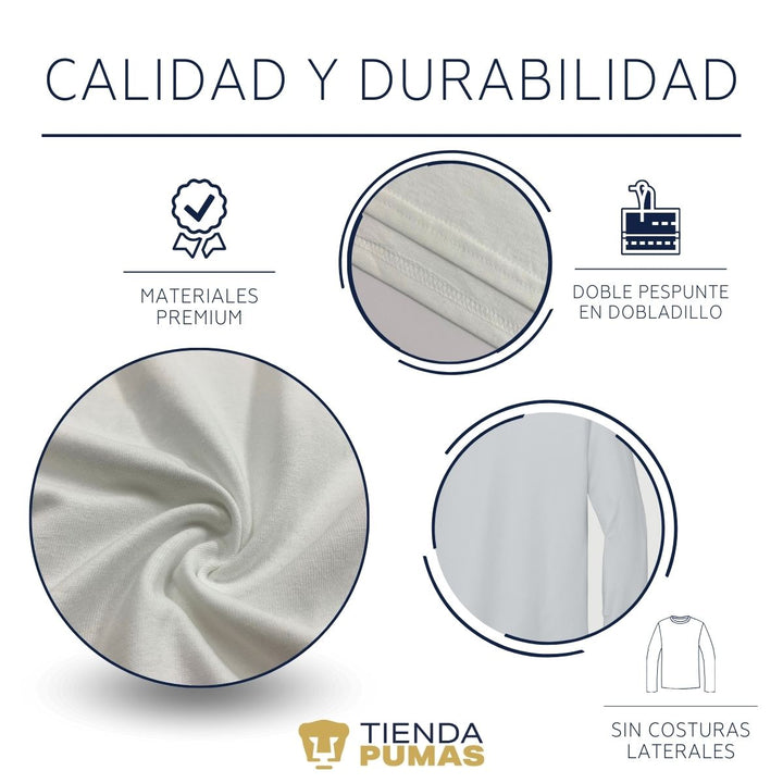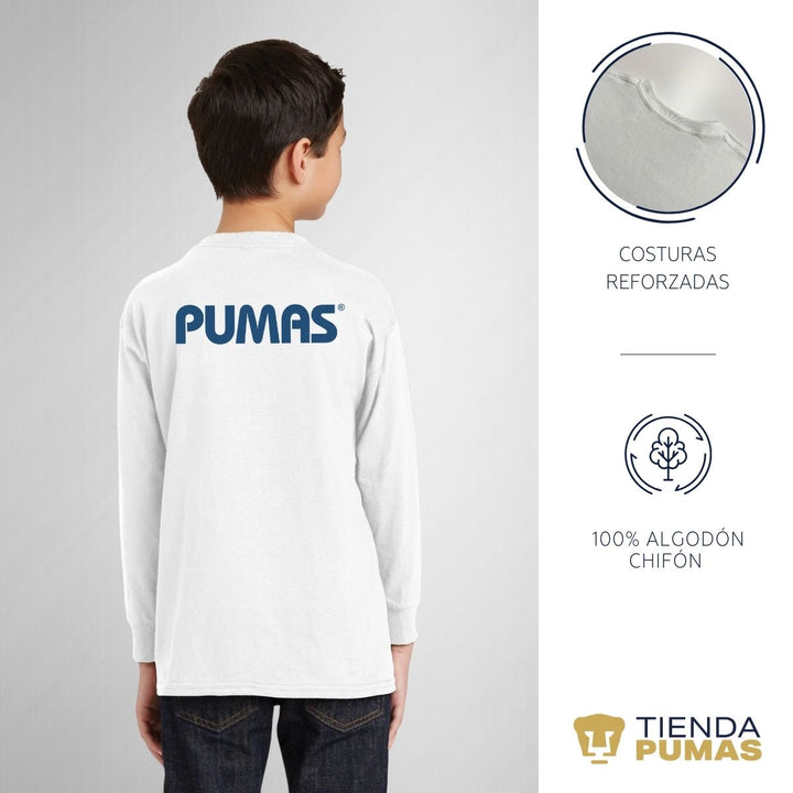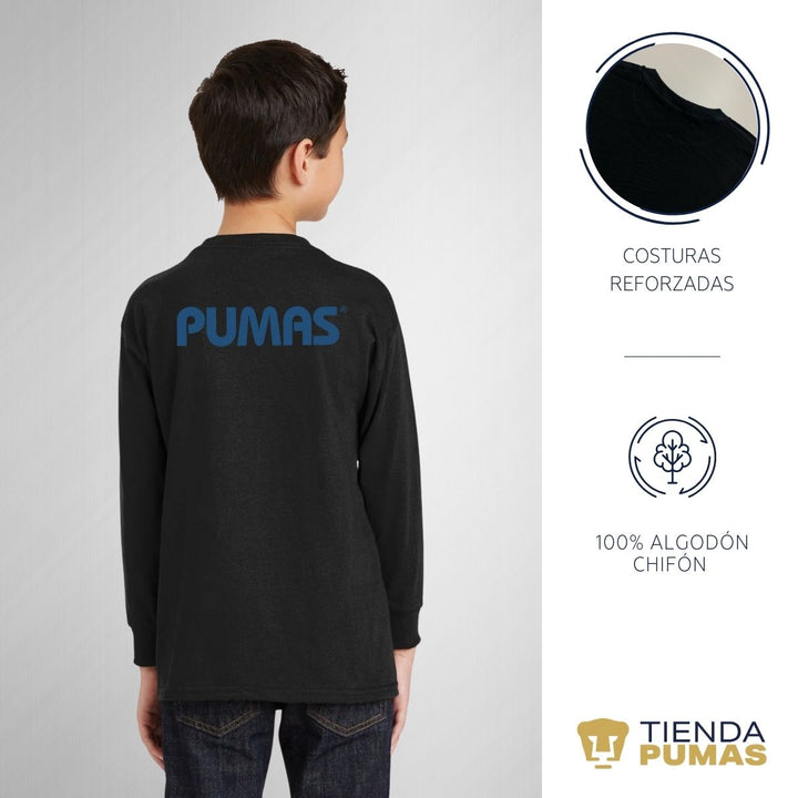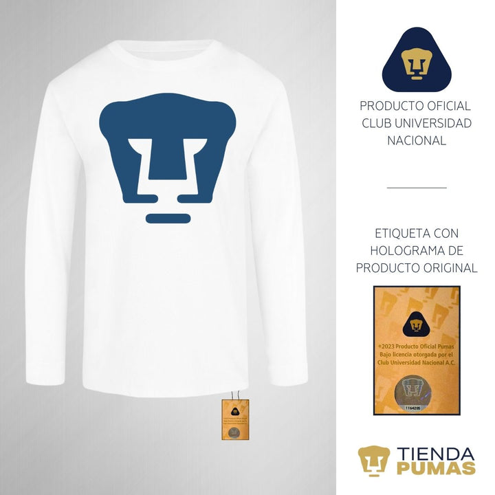 - ORIGINALIDAD: Playera infantil de manga larga. Producto Oficial con un diseño original de Pumas UNAM estampado en vinil textil. La playera cuenta además con etiqueta y holograma que garantiza un producto 100% original de Pumas UNAM.