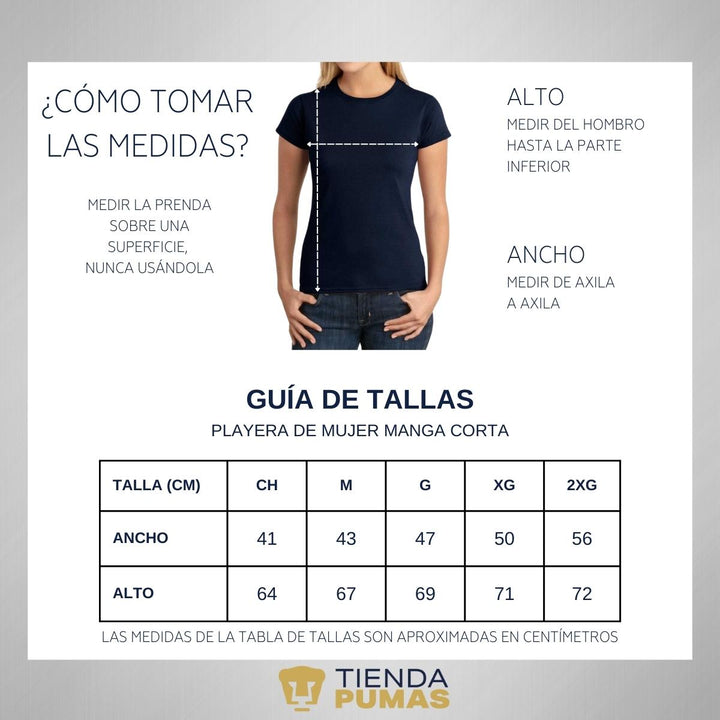- ORIGINALITY AND SUSTAINABILITY: Women's short sleeve T-shirt, Official Product with an original Pumas UNAM design printed with DTG (direct to garment) zero touch technology. Environmentally friendly inks without contaminants are used that adhere to the fibers of the clothing, guaranteeing quality, vivid colors and a long-lasting image on the t-shirt without compromising the planet. The shirt also has a label and hologram that guarantees it as a 100% original product from Club Universidad Nacional.