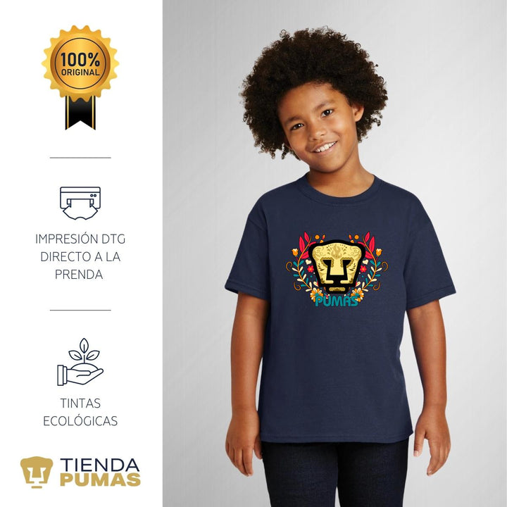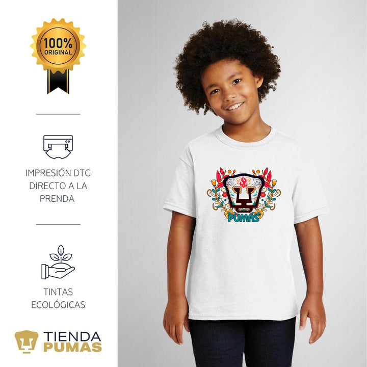 - ORIGINALIDAD Y SOSTENIBILIDAD: Playera infantil de manga corta, Producto Oficial con un diseño original de Pumas UNAM impreso con tecnología DTG (directo a la prenda) tacto cero. Se utilizan tintas ecológicas sin contaminantes que se adhieren a las fibras de la ropa, garantizando calidad, colores vivos e imagen de larga duración en la camiseta sin comprometer el planeta. La playera cuenta además con etiqueta y holograma que garantiza un producto 100% original de Pumas UNAM.