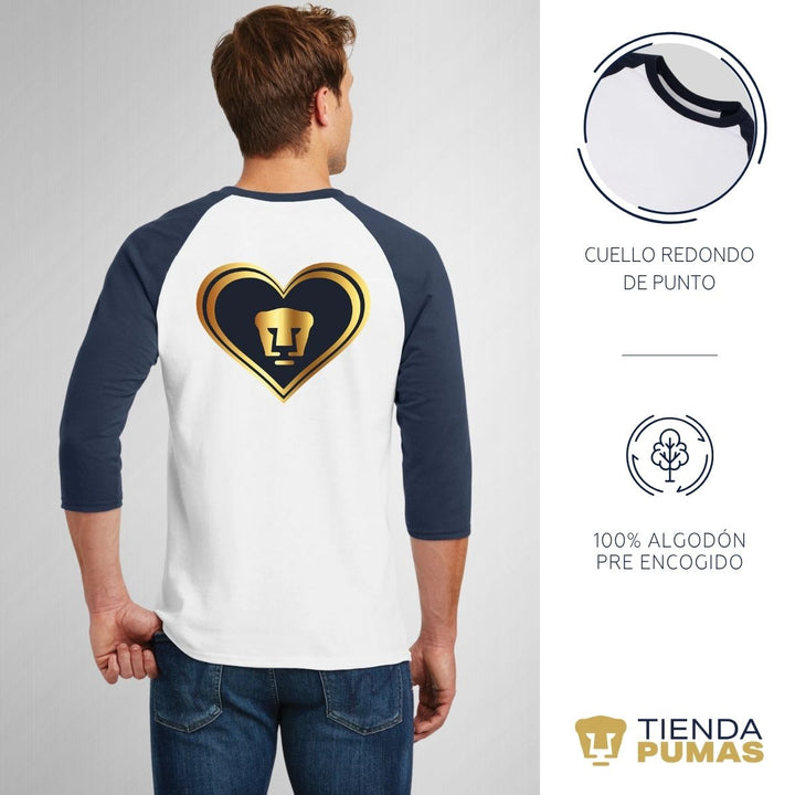 Playera Raglán Manga 3/4 Hombre Pumas UNAM Corazón Pumas
