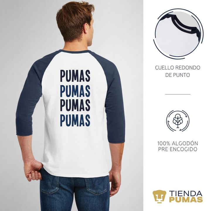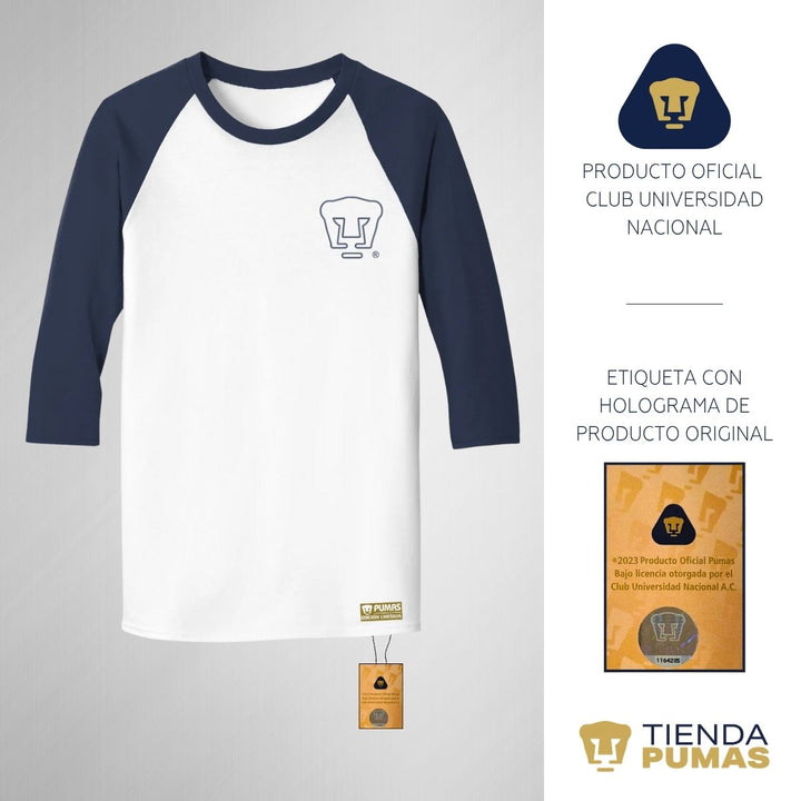 Playera Raglán Manga 3/4 Hombre Pumas UNAM Cuádruple Pumas