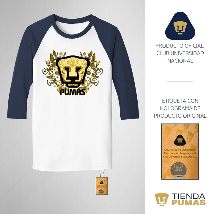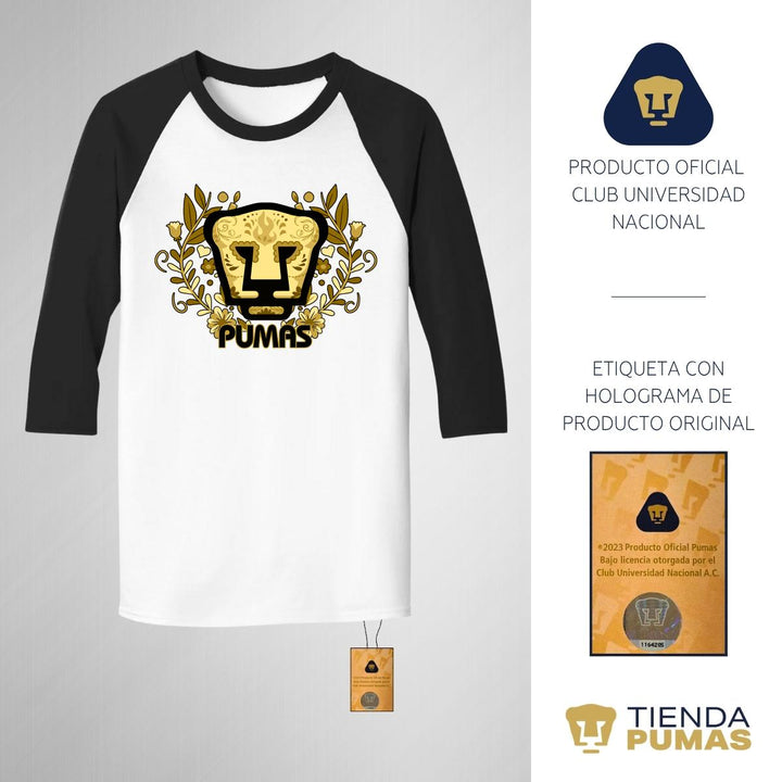 Playera Raglán Manga 3/4 Hombre Pumas UNAM Día de Muertos Oro