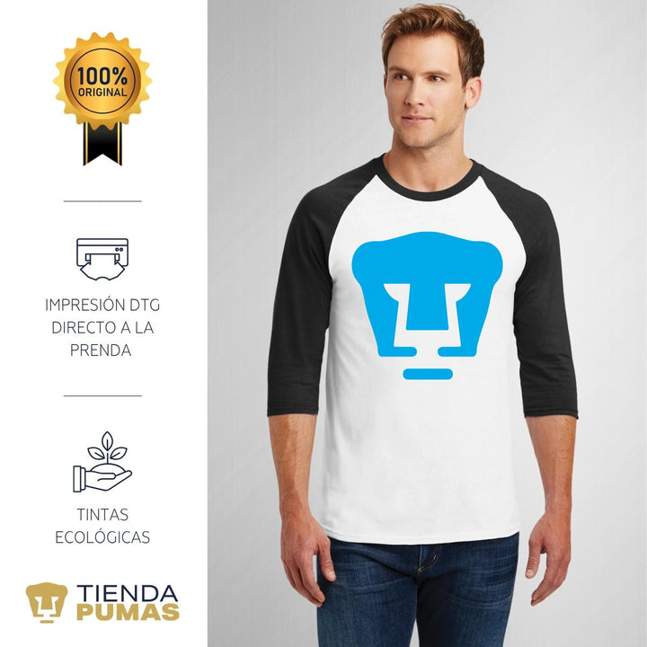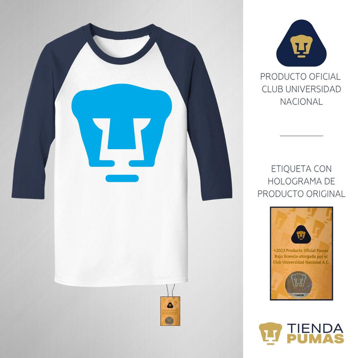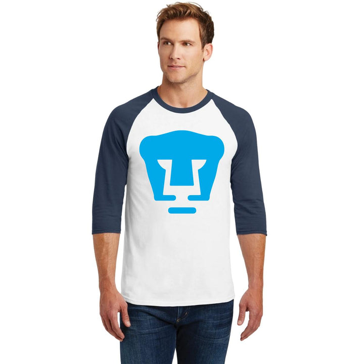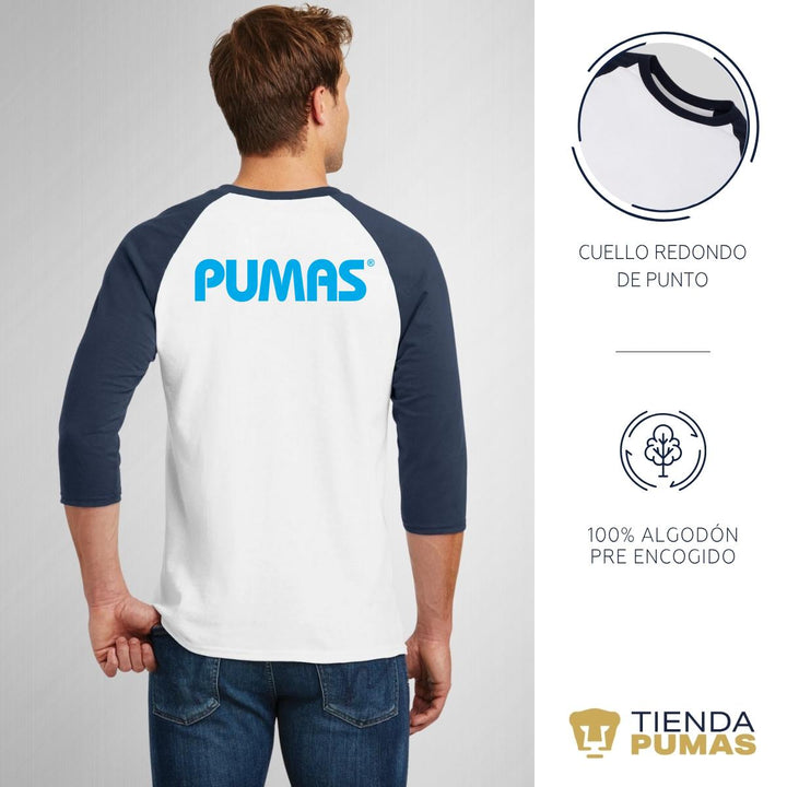 Playera Raglán Manga 3/4 Hombre Pumas UNAM Logo Azul báltico