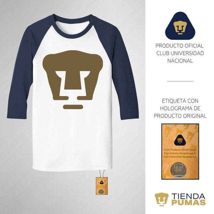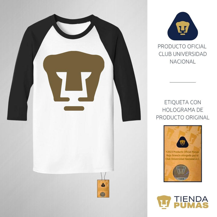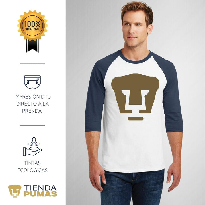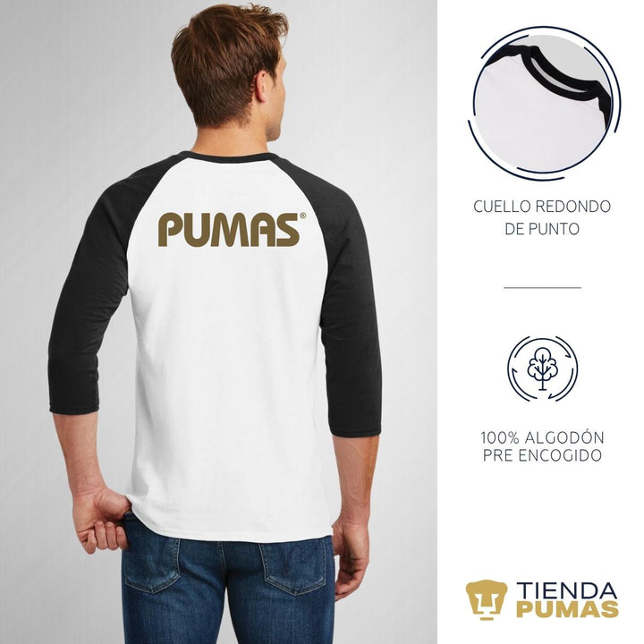 Playera Raglán Manga 3/4 Hombre Pumas UNAM Logo dorado