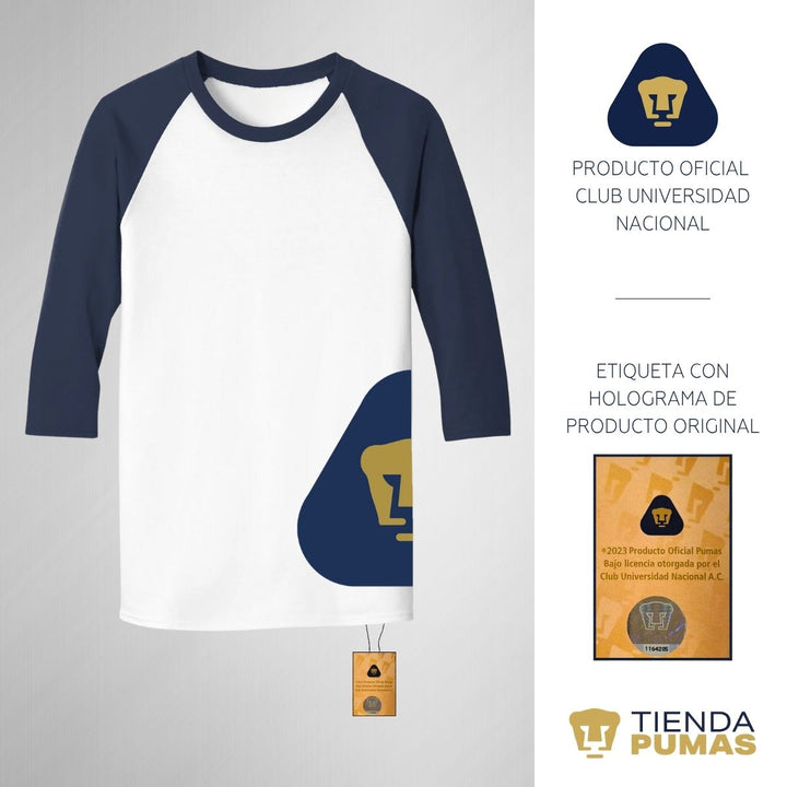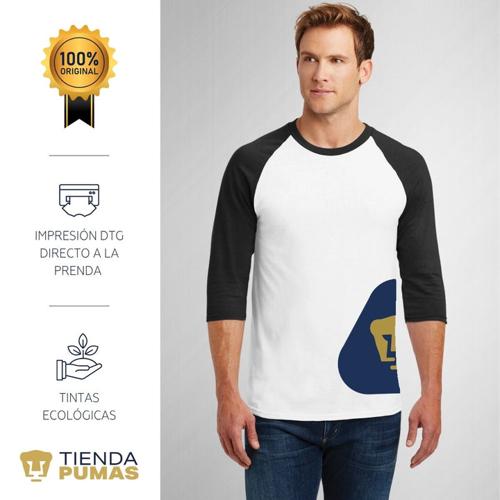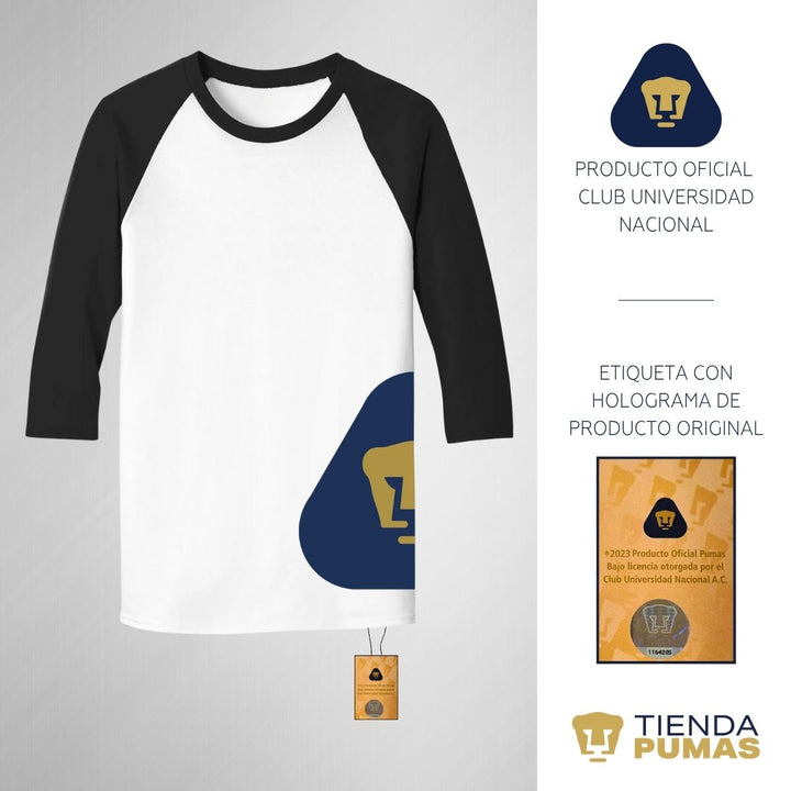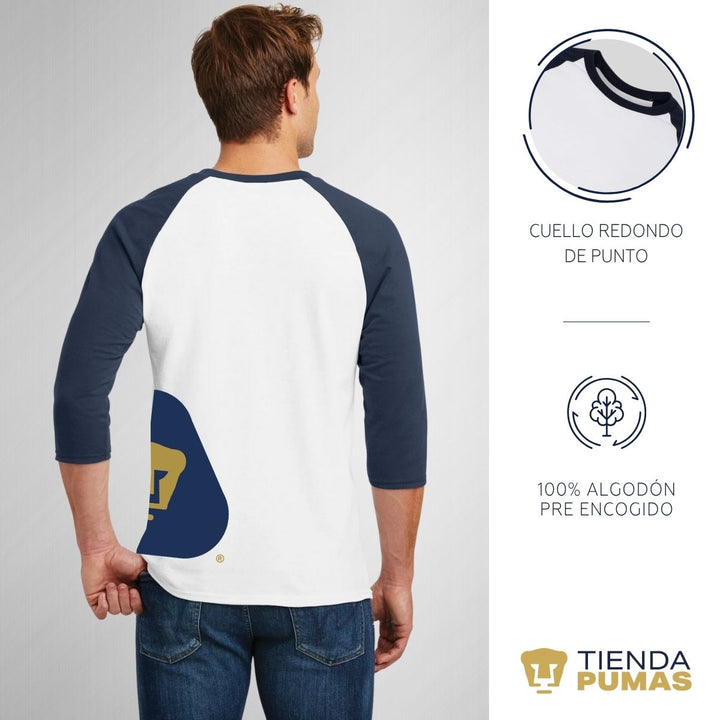 Playera Raglán Manga 3/4 Hombre Pumas UNAM Logo lateral