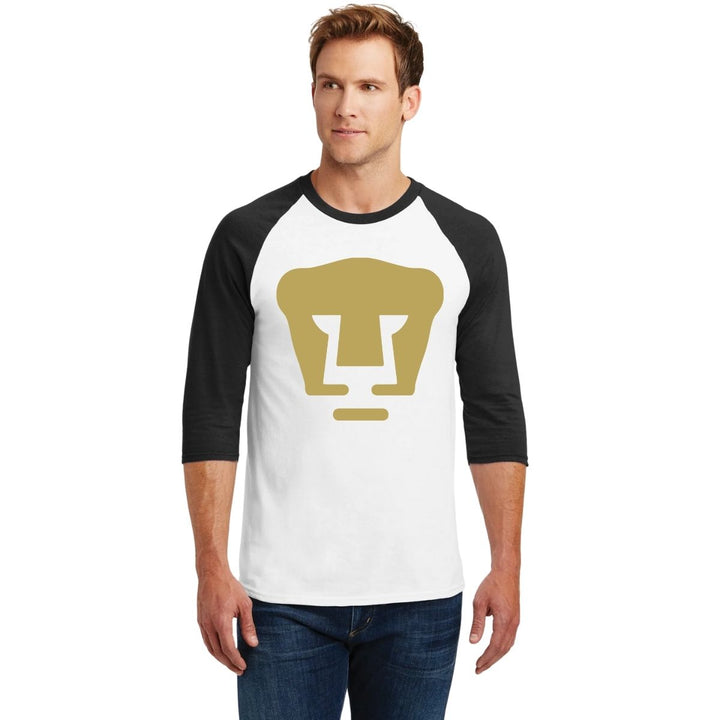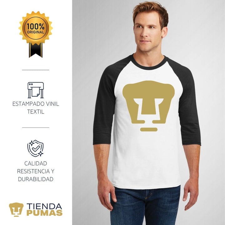 Playera Raglán Manga 3/4 Hombre Pumas UNAM Logo Vinil Dorado