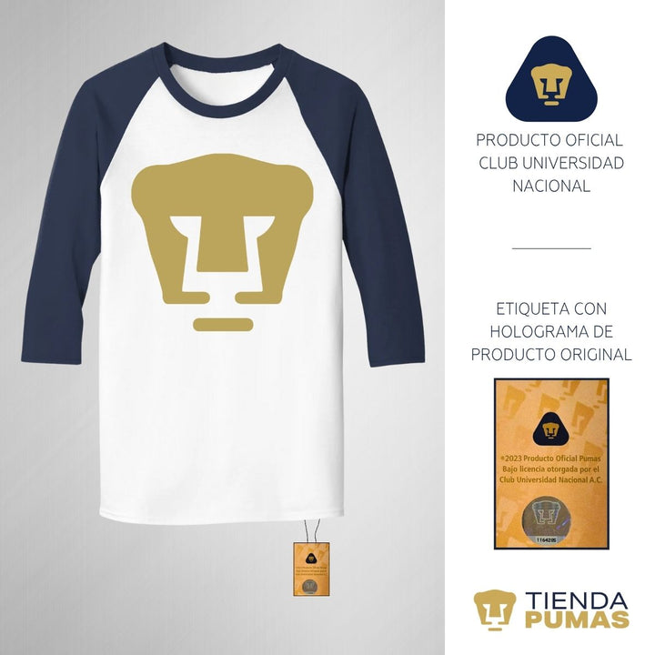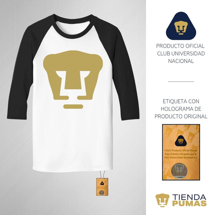- ORIGINALIDAD Y SOSTENIBILIDAD: Playera de hombre raglán manga 3/4. Producto Oficial con un diseño original de Pumas UNAM estampado en vinil textil. La playera cuenta además con etiqueta y holograma que garantiza un producto 100% original de Pumas UNAM.