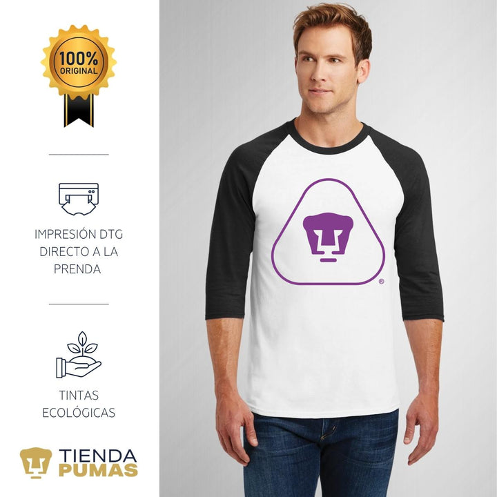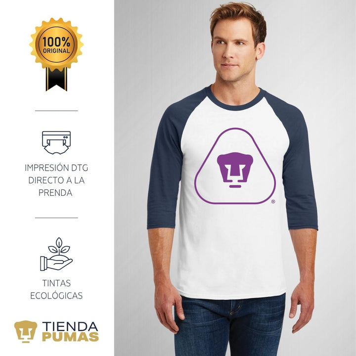 - ORIGINALIDAD Y SOSTENIBILIDAD: Playera de hombre raglán manga 3/4. Producto Oficial con un diseño original de Pumas UNAM impreso con tecnología DTG (directo a la prenda) tacto cero. Se utilizan tintas ecológicas sin contaminantes que se adhieren a las fibras de la ropa, garantizando calidad, colores vivos e imagen de larga duración en la camiseta sin comprometer el planeta. La playera cuenta además con etiqueta y holograma que garantiza un producto 100% original de Pumas UNAM.