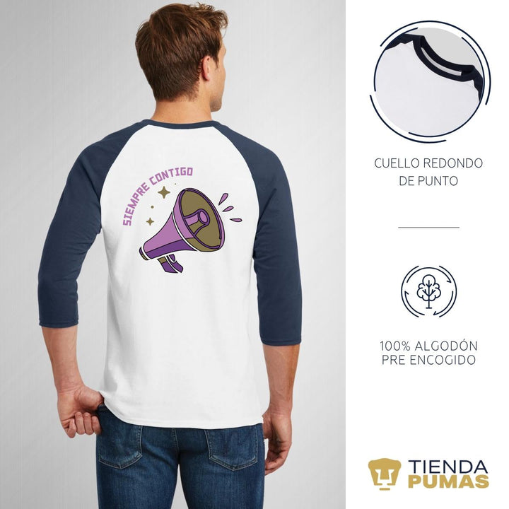Playera Raglán Manga 3/4 Hombre Pumas UNAM Siempre Contigo 8M Marzo