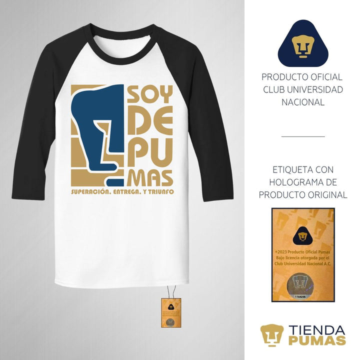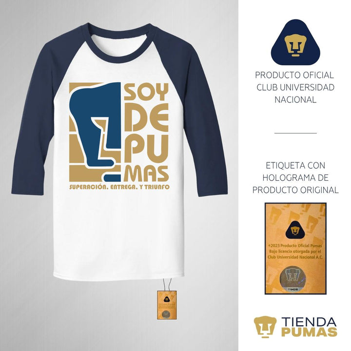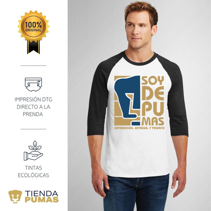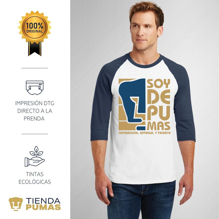 Playera Raglán Manga 3/4 Hombre Pumas UNAM Soy de Pumas