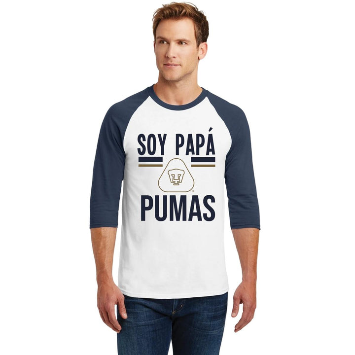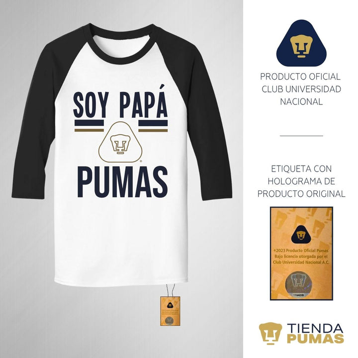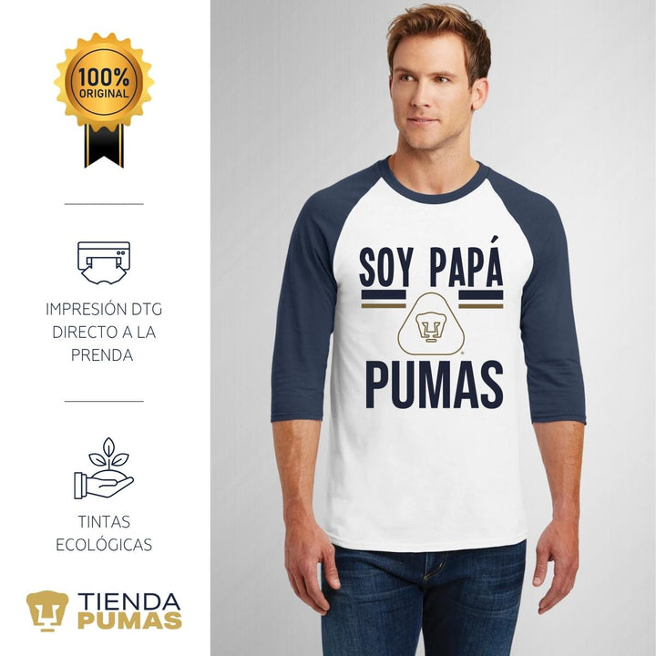 Playera Raglán Manga 3/4 Hombre Pumas UNAM Soy Papá Pumas Logo