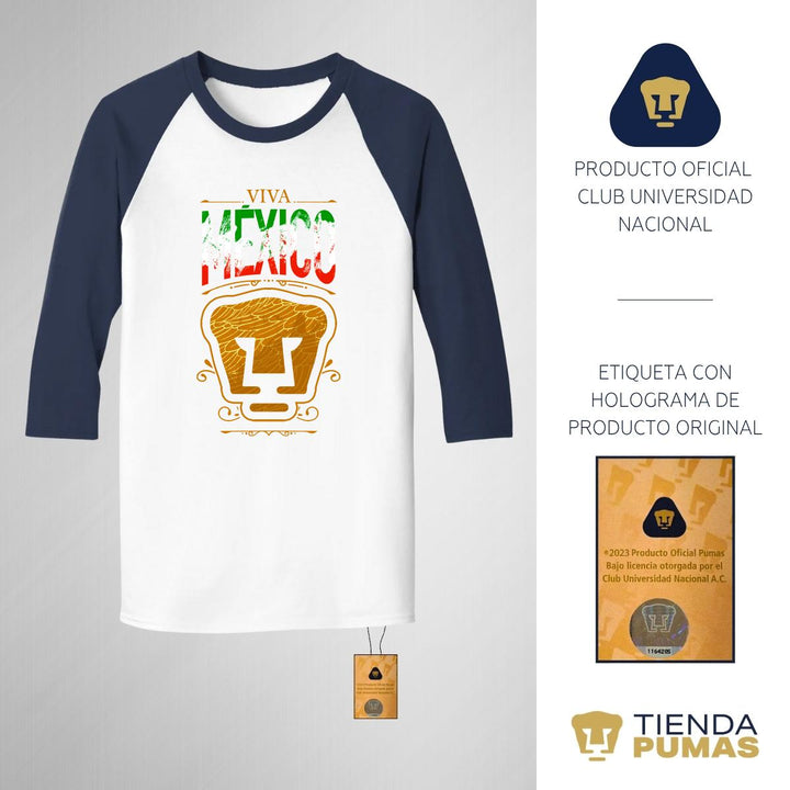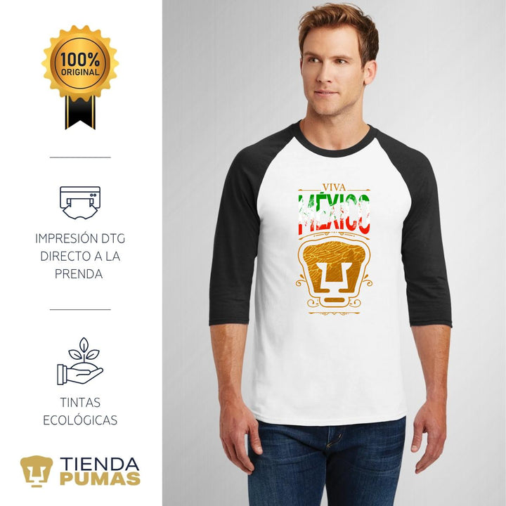 Playera Raglán Manga 3/4 Hombre Pumas UNAM Viva México Escudo