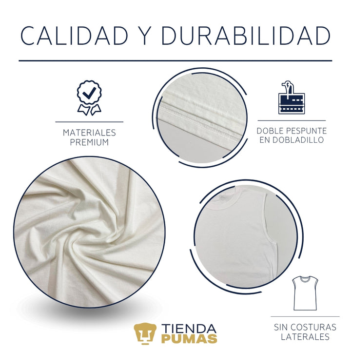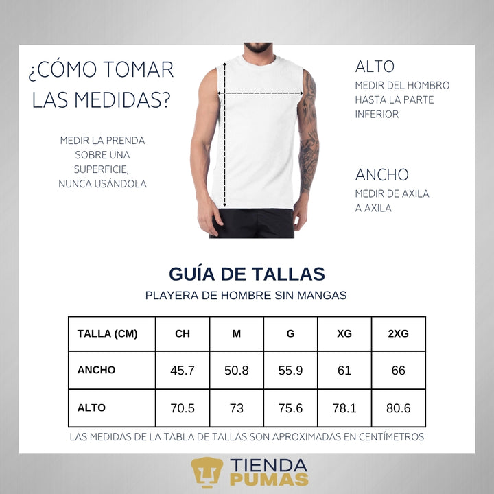 - ORIGINALITY AND SUSTAINABILITY: Men's sleeveless T-shirt, Official Product with an original design by Pumas UNAM with vinyl print and printing with DTG (direct to garment) zero touch technology. Environmentally friendly inks without contaminants are used that adhere to the fibers of the clothing, guaranteeing quality, vivid colors and a long-lasting image on the t-shirt without compromising the planet.