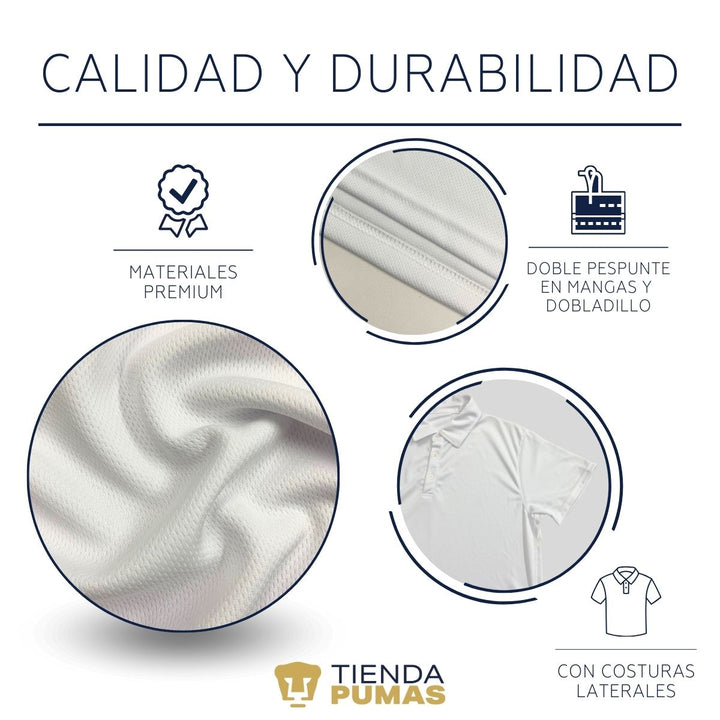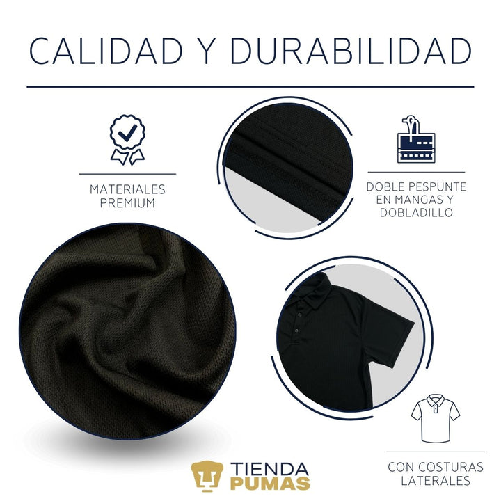 - ORIGINALITY: Breathable men's polo t-shirt, short sleeve, Official Product with original Pumas UNAM design printed with vinyl, guaranteeing quality, vivid colors and long-lasting image on the t-shirt. The shirt also has a label and hologram that guarantees a 100% original Pumas UNAM product.