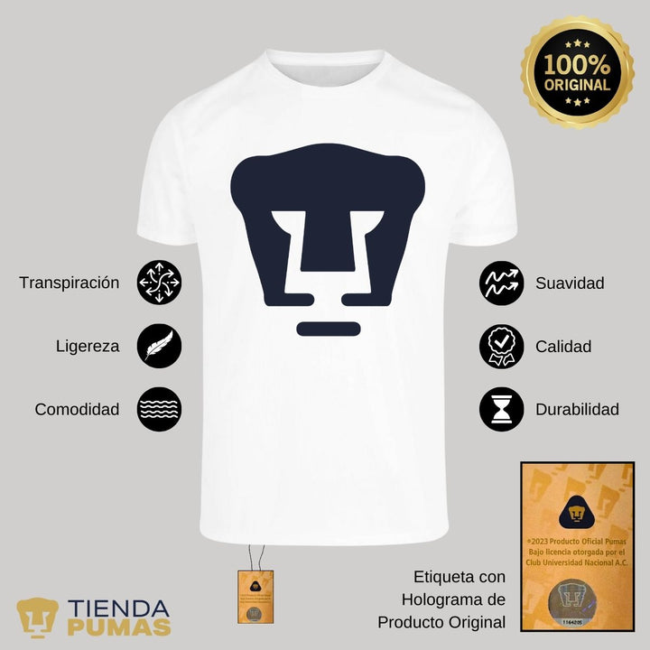 - ORIGINALIDAD Y SOSTENIBILIDAD: Playera transpirable de hombre manga corta. Producto Oficial con diseño original de Pumas UNAM impreso con tecnología DTG (directo a la prenda) tacto cero. Se utilizan tintas ecológicas sin contaminantes que se adhieren a las fibras de la ropa, garantizando calidad, colores vivos e imagen de larga duración en la camiseta sin comprometer el planeta. La playera cuenta además con etiqueta y holograma que garantiza un producto 100% original de Pumas UNAM.