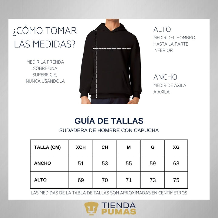 - ORIGINALIDAD: Sudadera de adulto con capucha, Producto Oficial con un diseño original de Pumas UNAM impreso con tecnología DTG (directo a la prenda) tacto cero. La sudadera cuenta con etiqueta y holograma que garantiza un producto 100% original de Pumas UNAM.