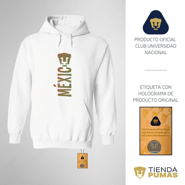 - ORIGINALIDAD Y SOSTENIBILIDAD: Sudadera de adulto con capucha, Producto Oficial con un diseño original de Pumas UNAM impreso con tecnología DTG (directo a la prenda) tacto cero. Se utilizan tintas ecológicas sin contaminantes que se adhieren a las fibras de la ropa, garantizando calidad, colores vivos e imagen de larga duración en la sudadera sin comprometer el planeta. La sudadera cuenta con etiqueta y holograma que garantiza un producto 100% original de Pumas UNAM.