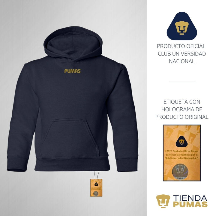 Sudadera Niños Hoodie Pumas UNAM Blank Dorado Azul