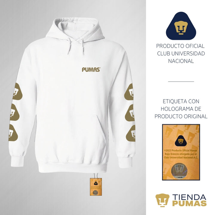 ORIGINALIDAD Y SOSTENIBILIDAD: Sudadera de adulto con capucha, Producto Oficial con un diseño original de Pumas UNAM estampado en vinil textil. La sudadera cuenta con etiqueta de holograma que garantiza un producto 100% original de Pumas UNAM.