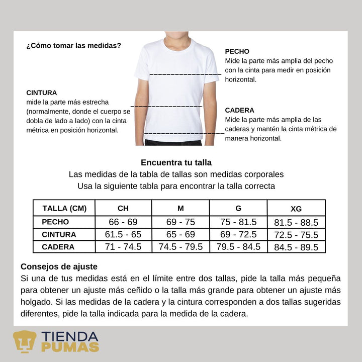- CONSEJOS DE AJUSTE: Si estás en el límite entre dos tallas, pide la talla más pequeña para obtener un ajuste más ceñido o la talla más grande para obtener un ajuste más holgado. Si las medidas del pecho y la cintura corresponden a dos tallas sugeridas diferentes, pide la talla indicada para la medida del pecho.