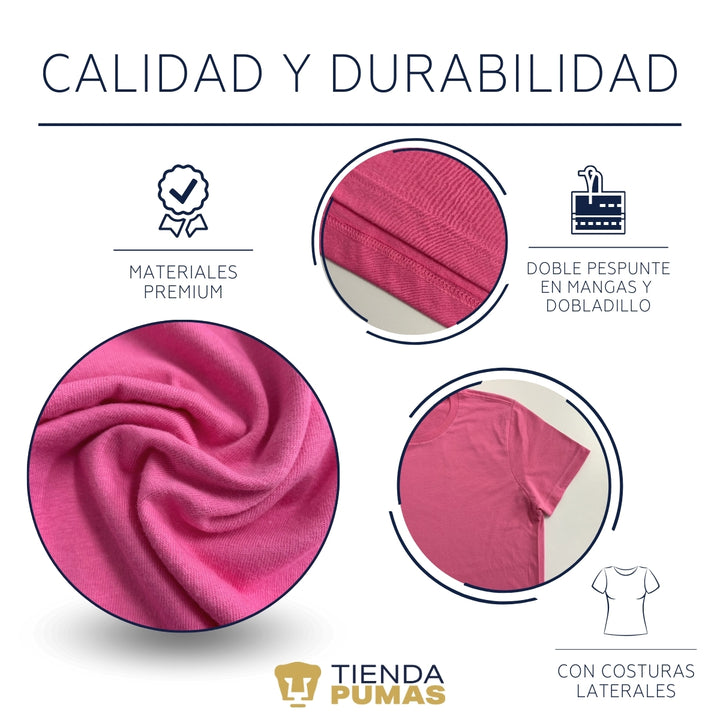 - ORIGINALIDAD Y SOSTENIBILIDAD: Playera de mujer manga corta, Producto Oficial con un diseño original de Pumas UNAM impreso con tecnología DTG (directo a la prenda) tacto cero. Se utilizan tintas ecológicas sin contaminantes que se adhieren a las fibras de la ropa, garantizando calidad, colores vivos e imagen de larga duración en la camiseta sin comprometer el planeta. La playera cuenta además con etiqueta y holograma que la garantiza como producto 100% original de Pumas UNAM.