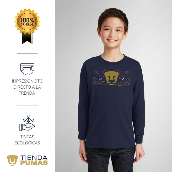 Playera M Larga Niños Pumas UNAM Día de Muertos Altar