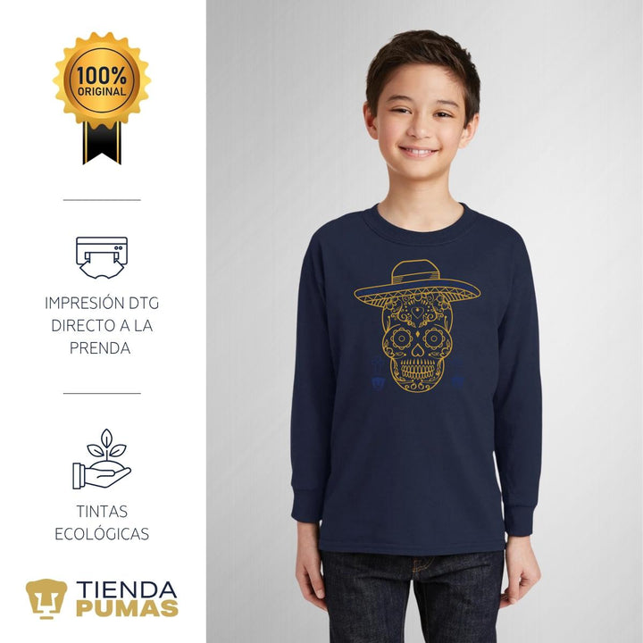 Playera M Larga Niños Pumas UNAM Día de muertos Calavera