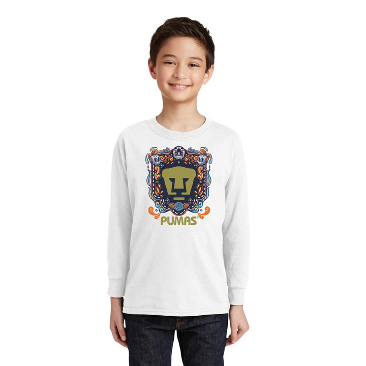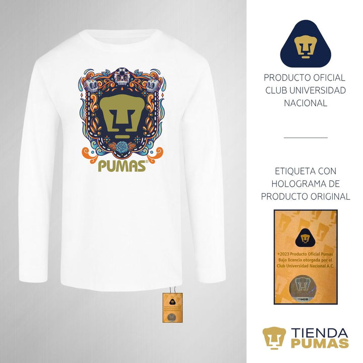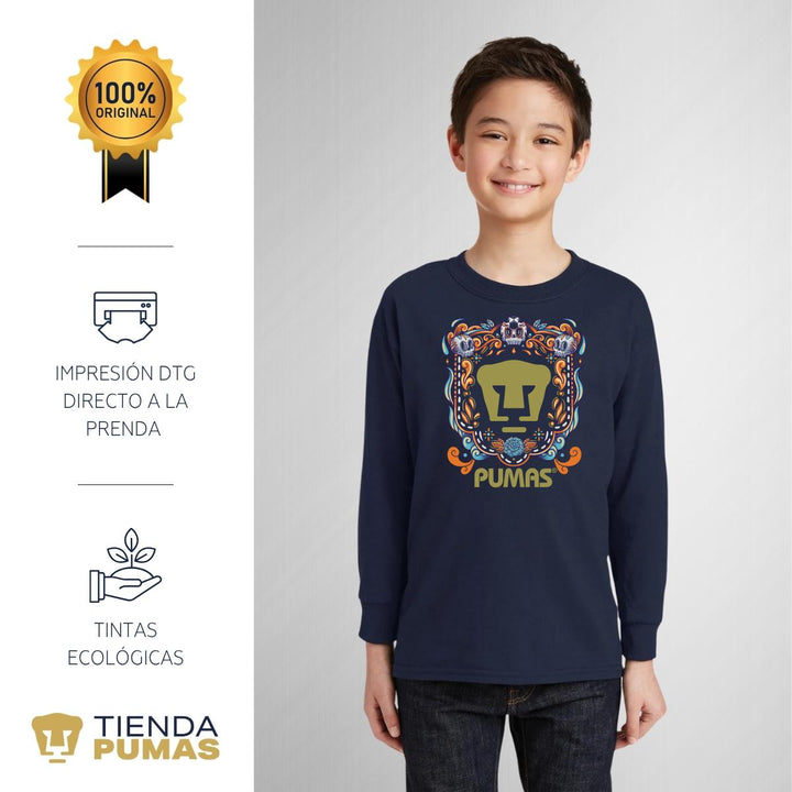 Playera M Larga Niños Pumas UNAM Día de Muertos Celeste