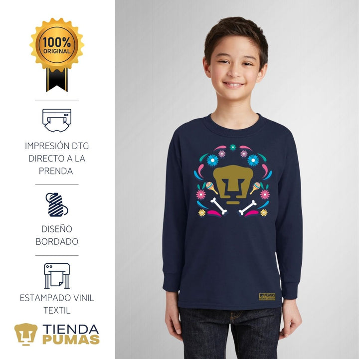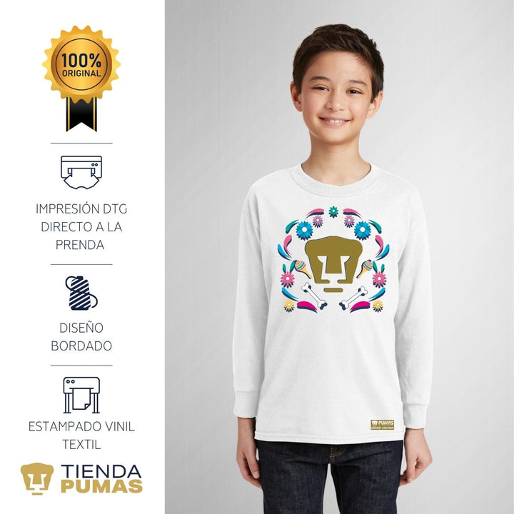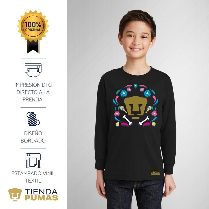 Playera M Larga Niños Pumas UNAM Día de muertos festividad