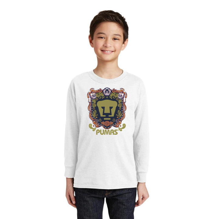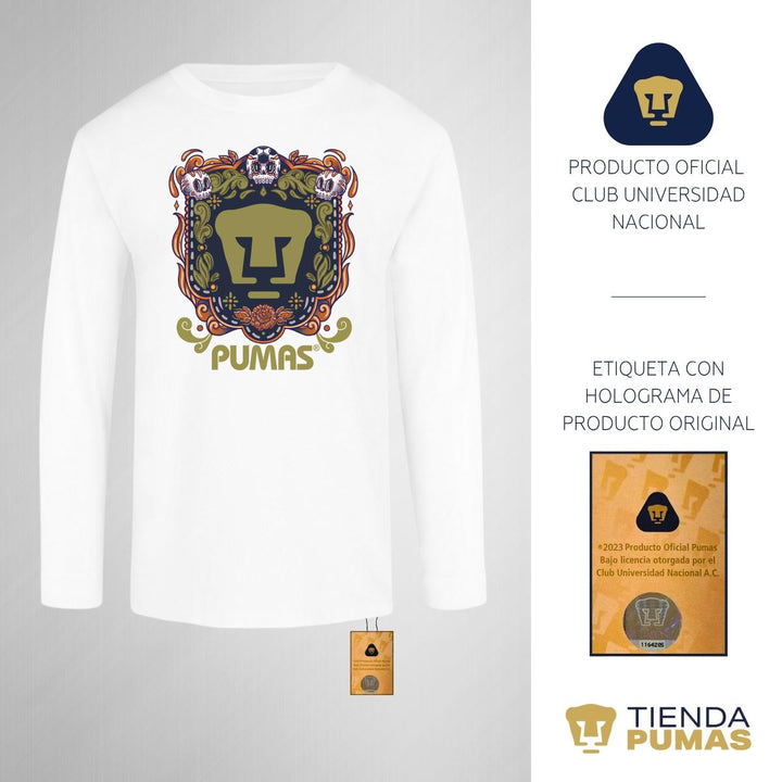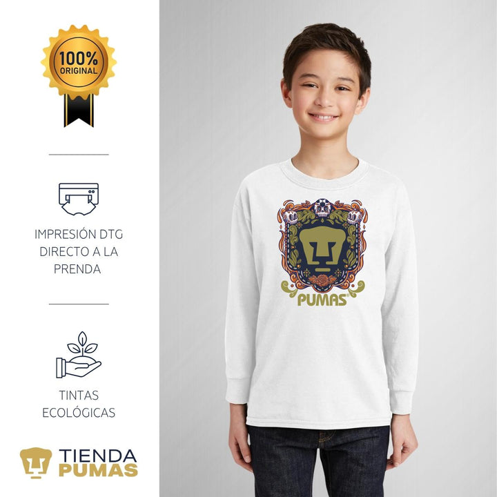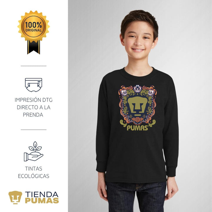 Playera M Larga Niños Pumas UNAM Día de Muertos Naranja
