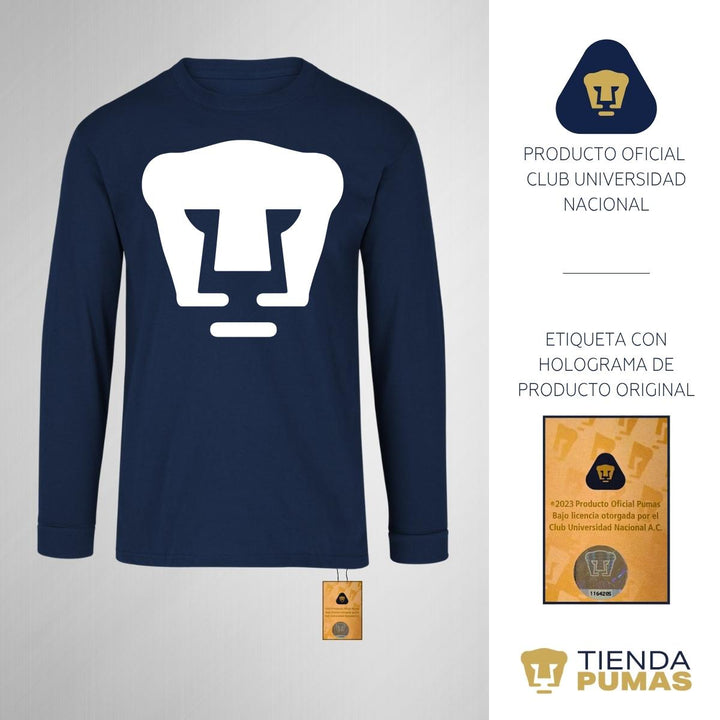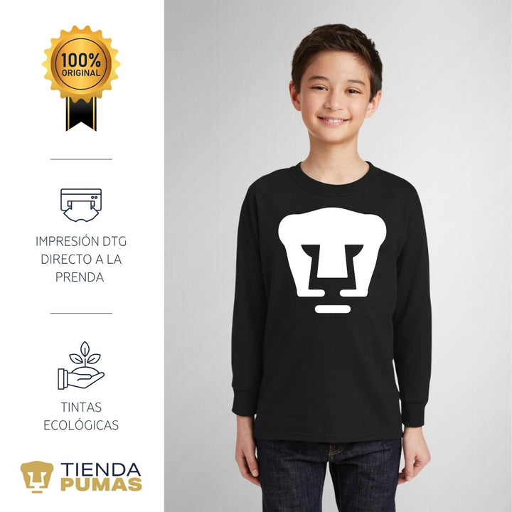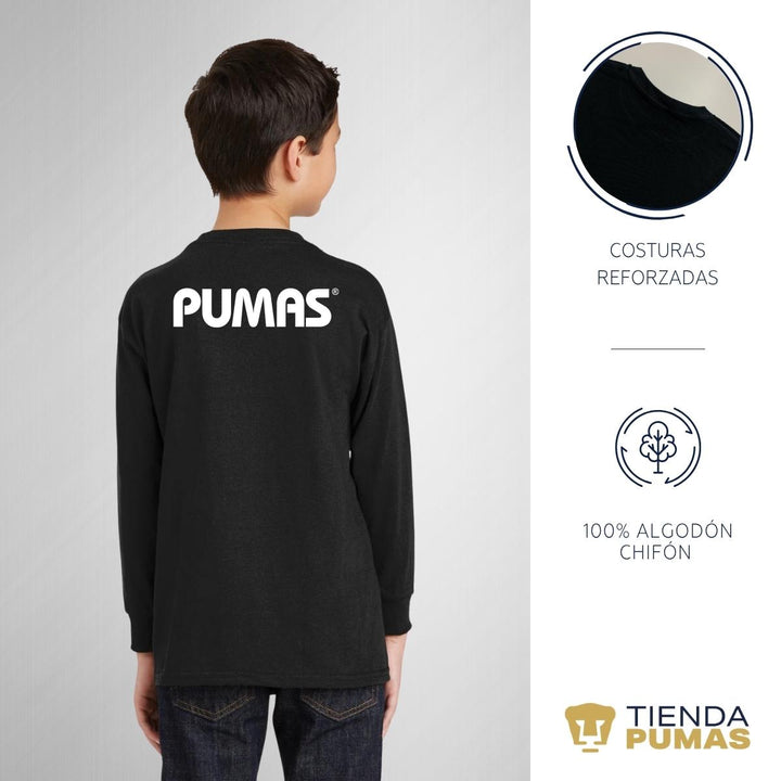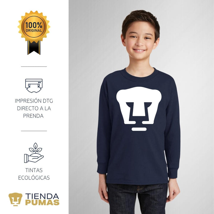 Playera M Larga Niños Pumas UNAM Logo blanco
