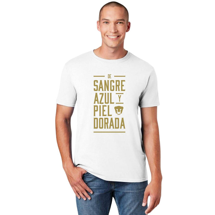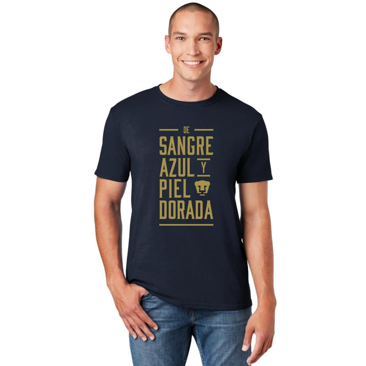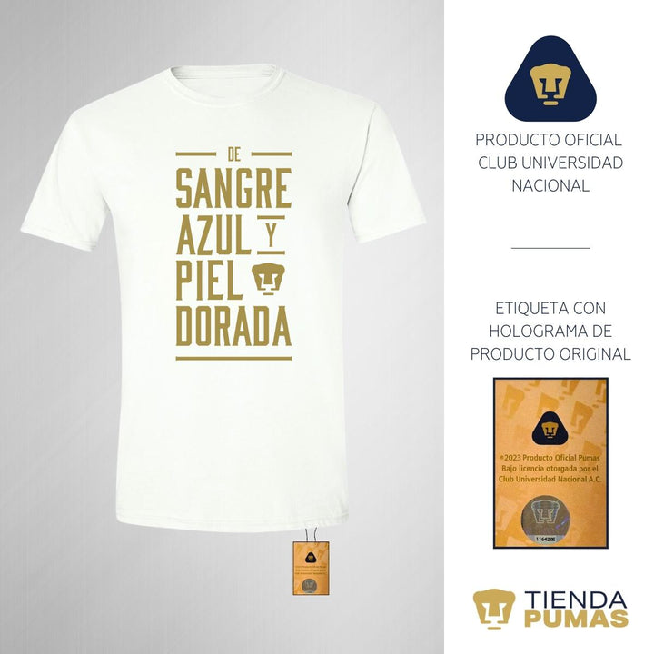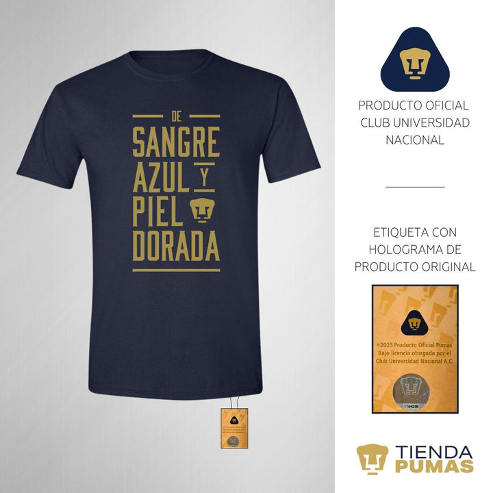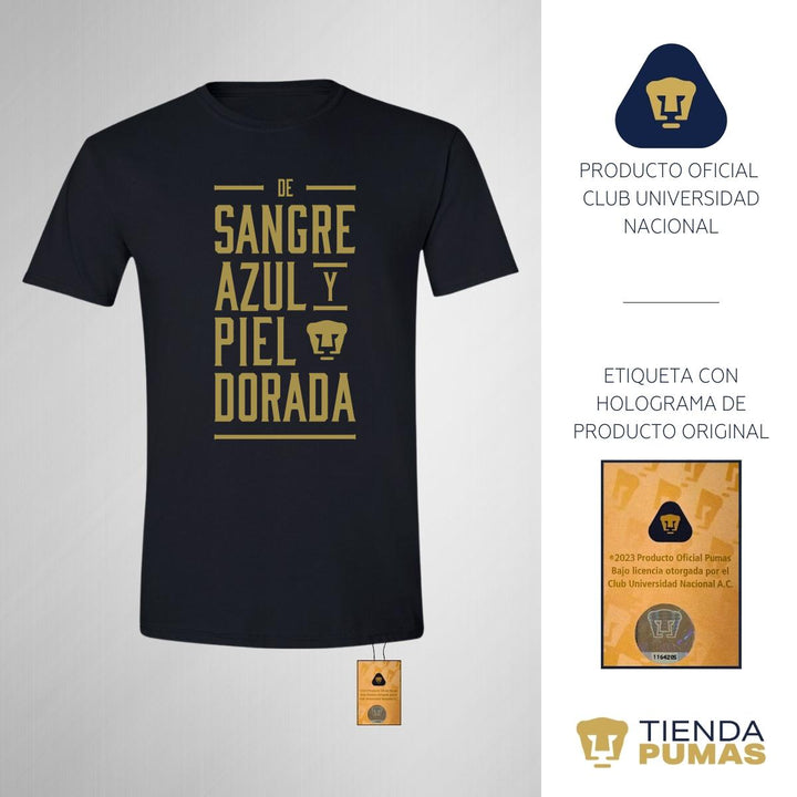 - Playera de manga corta para hombre Pumas edición "De sangre azul y piel dorada"