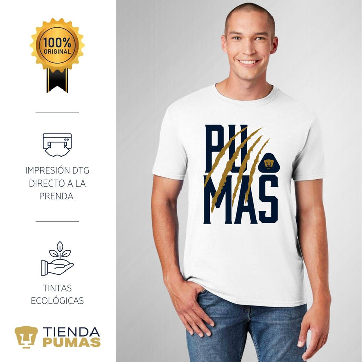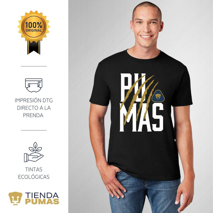 ORIGINALIDAD Y SOSTENIBILIDAD: Playera de hombre de manga corta, Producto Oficial con un diseño original de Pumas UNAM impreso con tecnología DTG (directo a la prenda) tacto cero. Se utilizan tintas ecológicas sin contaminantes que se adhieren a las fibras de la ropa, garantizando calidad, colores vivos e imagen de larga duración en la camiseta sin comprometer el planeta. La playera cuenta además con etiqueta y holograma que garantiza un producto 100% original de Pumas UNAM.