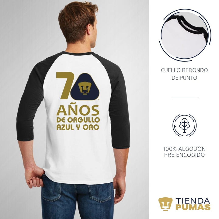 Playera Raglán Manga 3/4 Hombre Pumas UNAM 70 años Ed Lmt 4