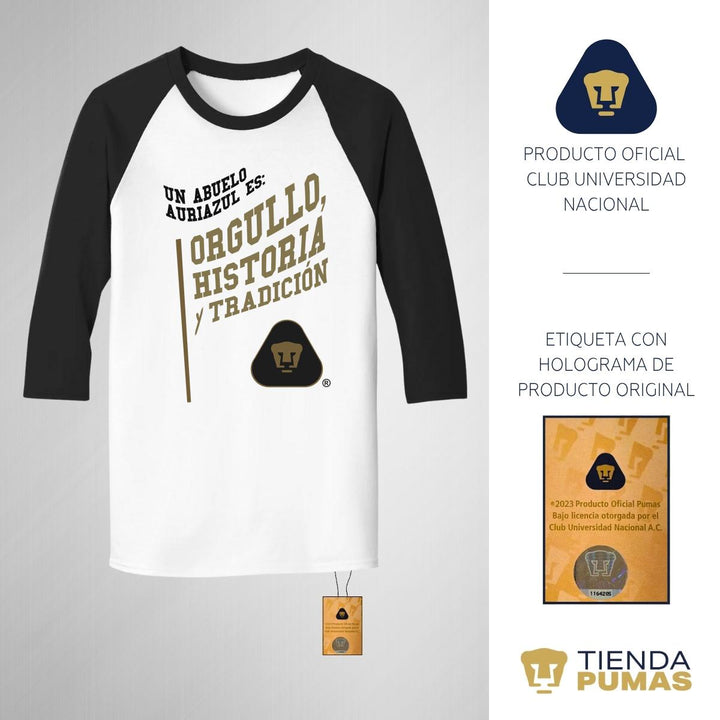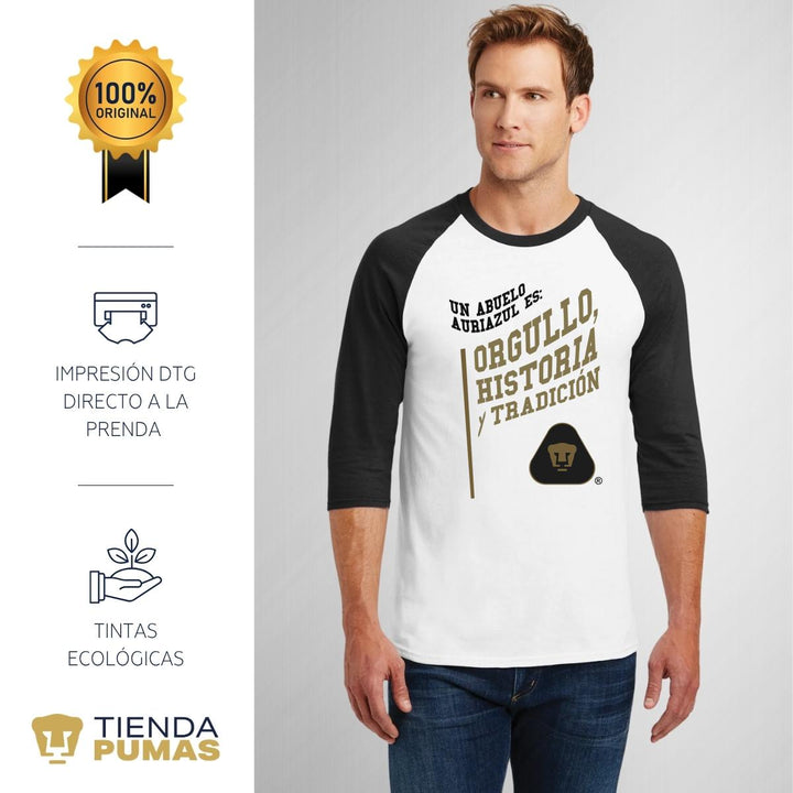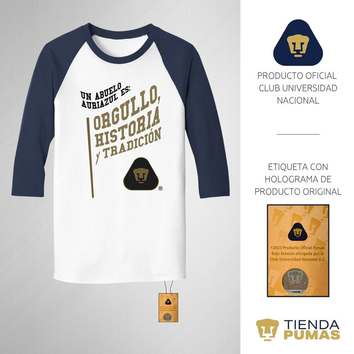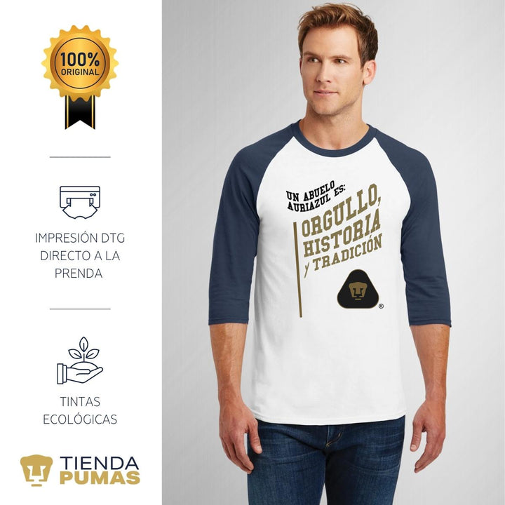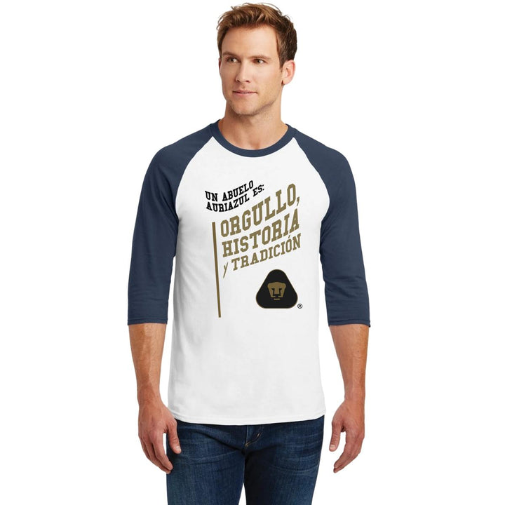 Playera Raglán Manga 3/4 Hombre Pumas UNAM Abuelo Auriazul