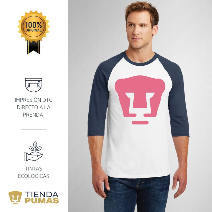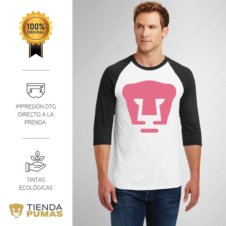 Playera Raglán Manga 3/4 Hombre Pumas UNAM Logo Rosa