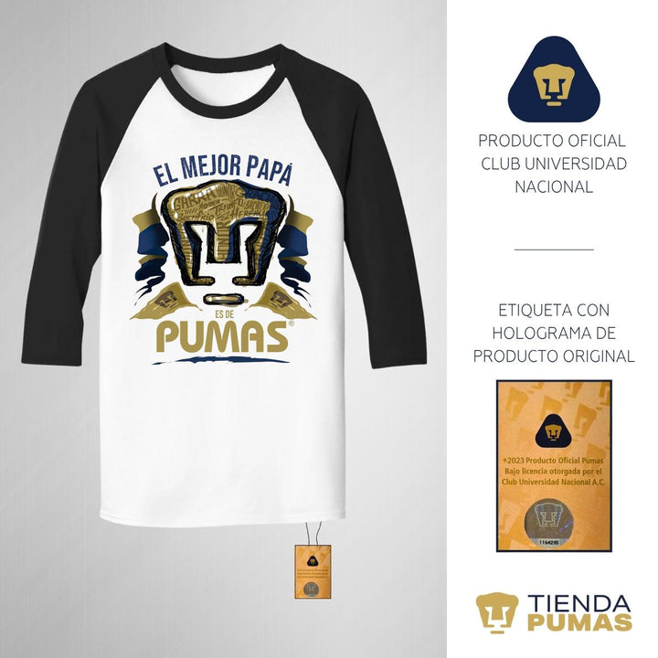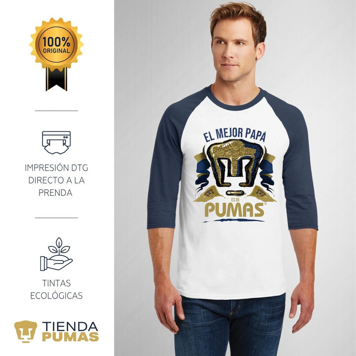 Playera Raglán Manga 3/4 Hombre Pumas UNAM Mejor Papá Pumas