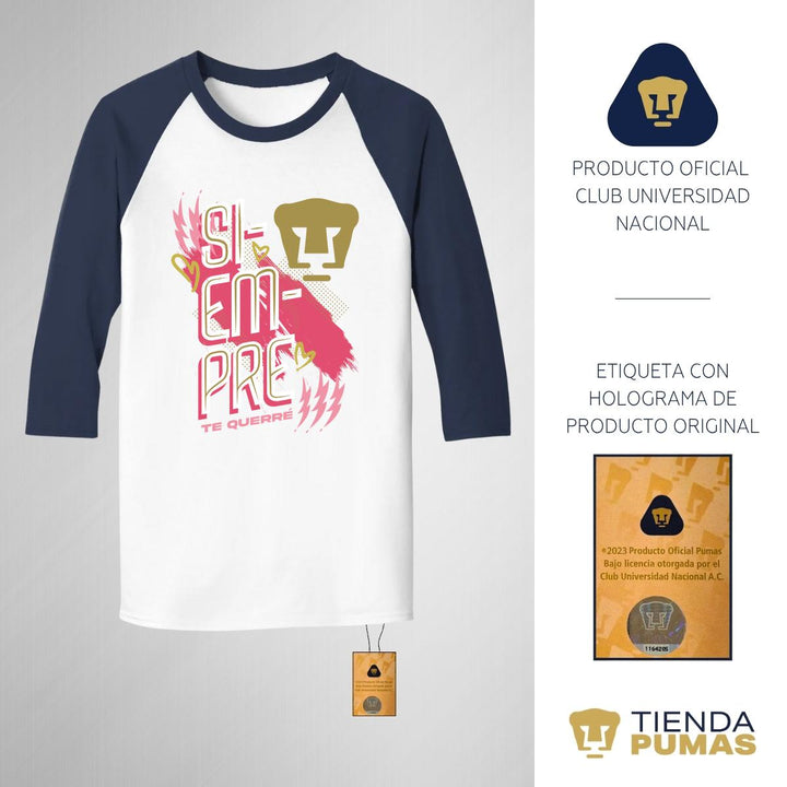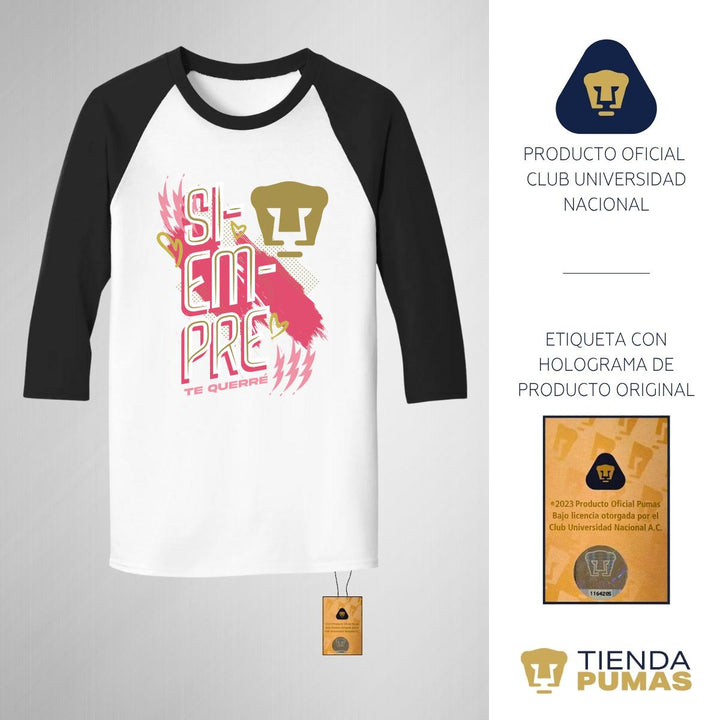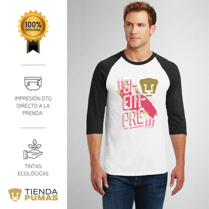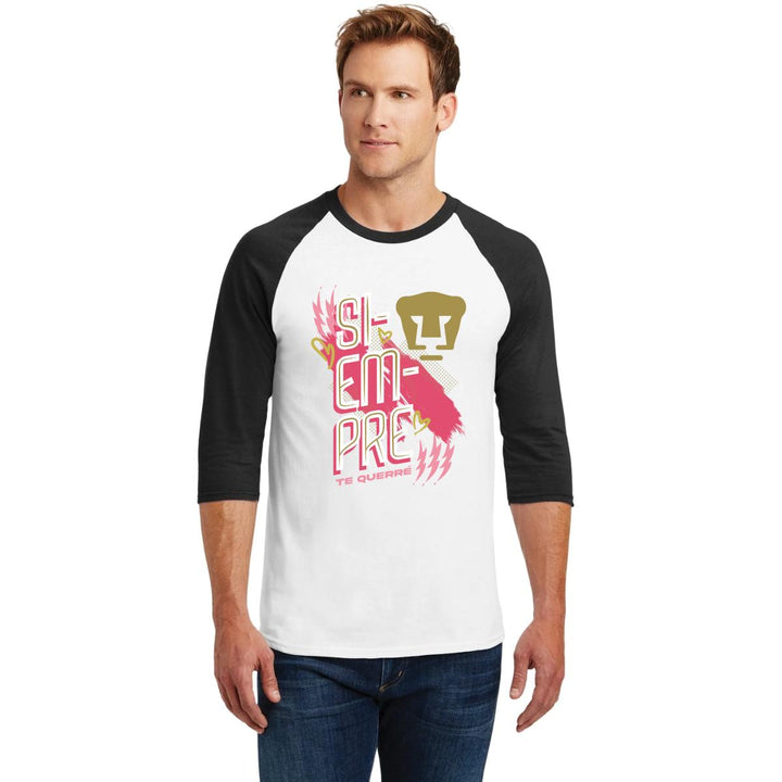 Playera Raglán Manga 3/4 Hombre Pumas UNAM Siempre te querré Rosa