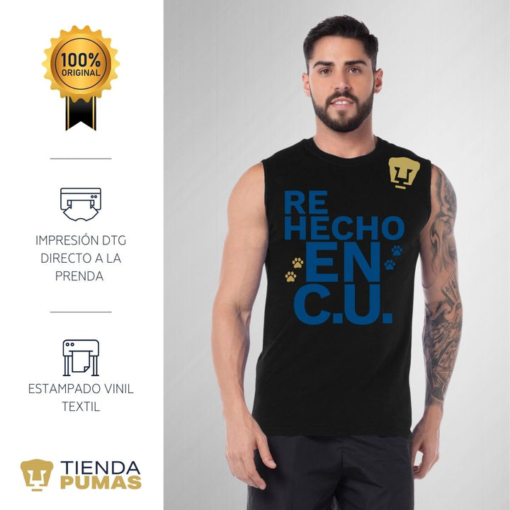 Playera Sin Manga Hombre Pumas UNAM Re Hecho en C.U. DTG-Vinil